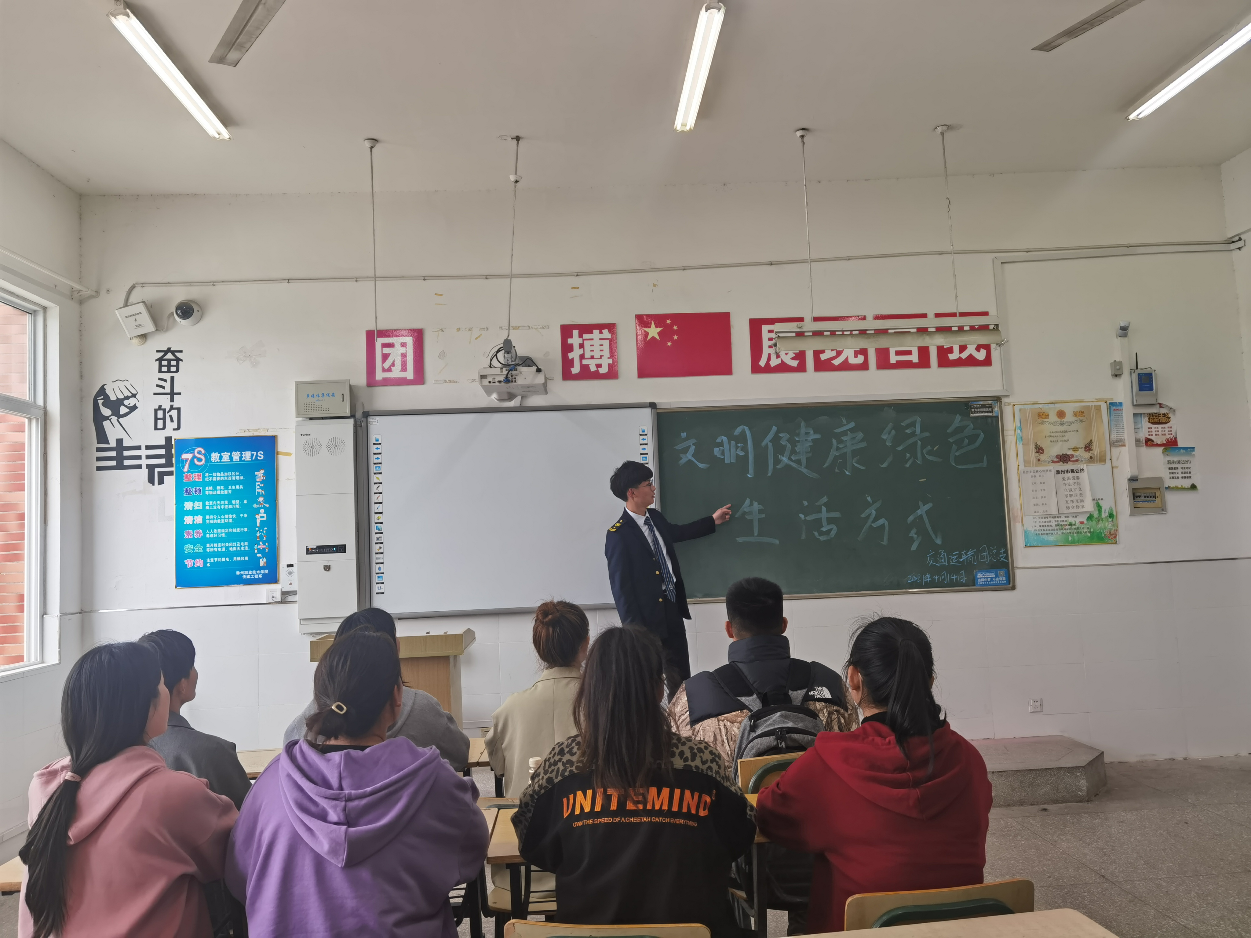 2021年4月14日,交通运输学院团支负责人于四号楼4409开展《文明健康绿色生活方式》主题宣讲活动。