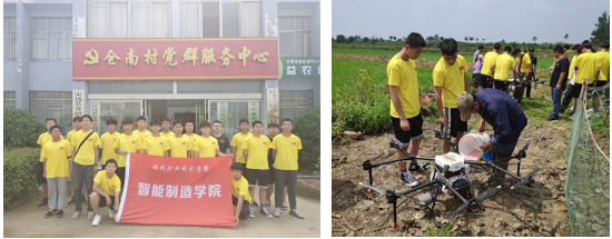 6月28日上午,智能制造学院师生代表赴滁州市定远县仓南村开展了用无人机为农民喷洒农药活动,同学们利用平时所学知识,发挥专业优势,对村民的农田进行无人机植保作业。