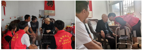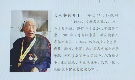上午九点,志愿者们来到了邱世田老先生的家中,并与邱老先生进行了亲切的交谈。交谈中,老先生讲起了他的参军故事,得知老前辈自14岁就志愿参军,先后参加了辉龙岗战斗、八百桥战斗、涟水战役、枣庄战役等。