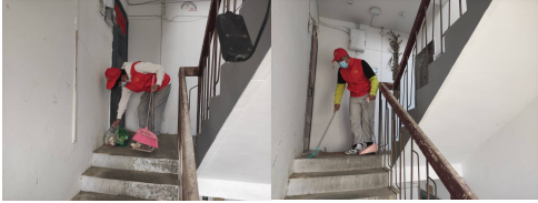 下午3点,我院两名老师、三名学生代表,来到遵阳社区,对小区楼道进行清扫、对牛皮癣小广告进行全面清理、帮助小区内非机动车和机动车实行有序停放。