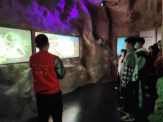 在博物馆工作人员的带领下,首先参观了《襟江带淮名山秀水—滁州自然风物陈列》和《风云江淮诗咏琅琊—滁州历史文化陈列》两个展区。第一个展区:自然风物陈列以展示滁州自然风貌为主,分为岩溶地貌、古老的火山、丹霞胜境、湿地天堂、草场与牧区、走进森林、地下宝藏和古生物遗迹等七个部分。第二个展区:历史文化陈列分为源起淮水、涂中初兴、气越淮扬、开天首郡、近世风云等五个版块。以上每个版块都给前来参观学习的团总支干事留下了深刻的印象,并发表自己的感想,使同学们对滁州的历史文化产生极大的兴趣。