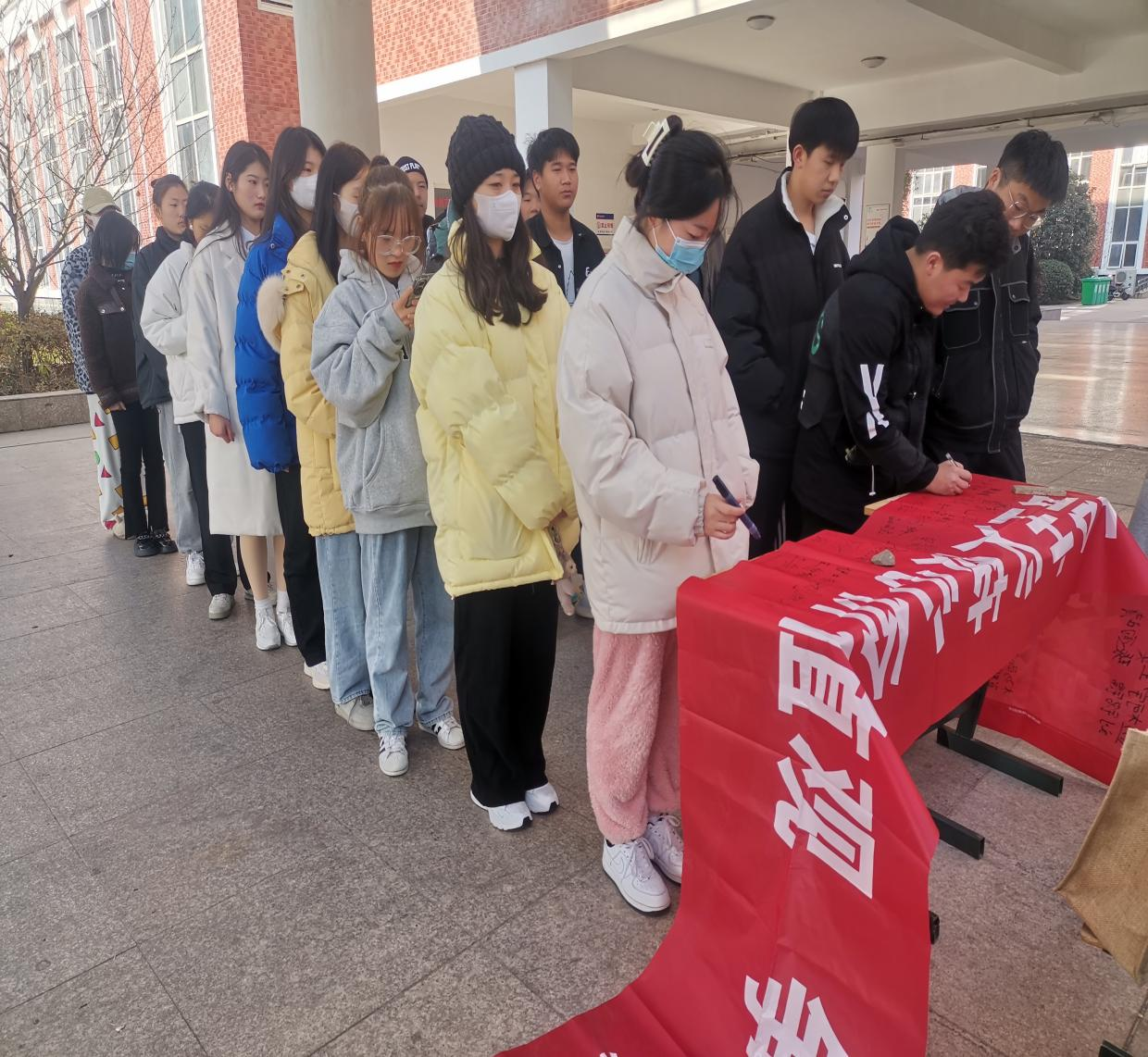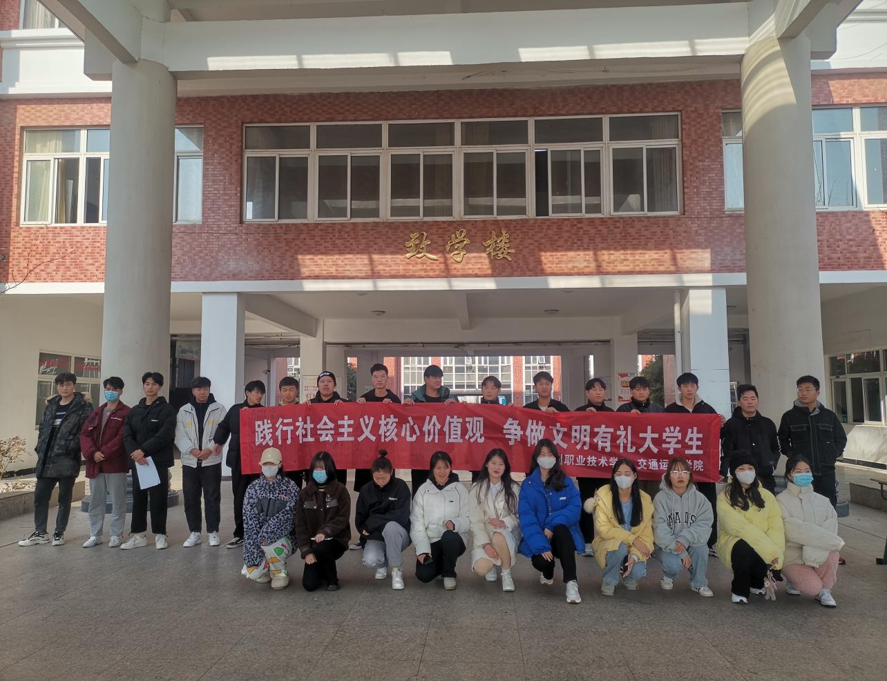 为践行社会主义核心价值观,塑造当代大学生良好形象。交通运输学院学生会于2021年12月22日中午,开展以“践行社会主义核心价值观,争做文明有礼大学生”为主题的签名活动。