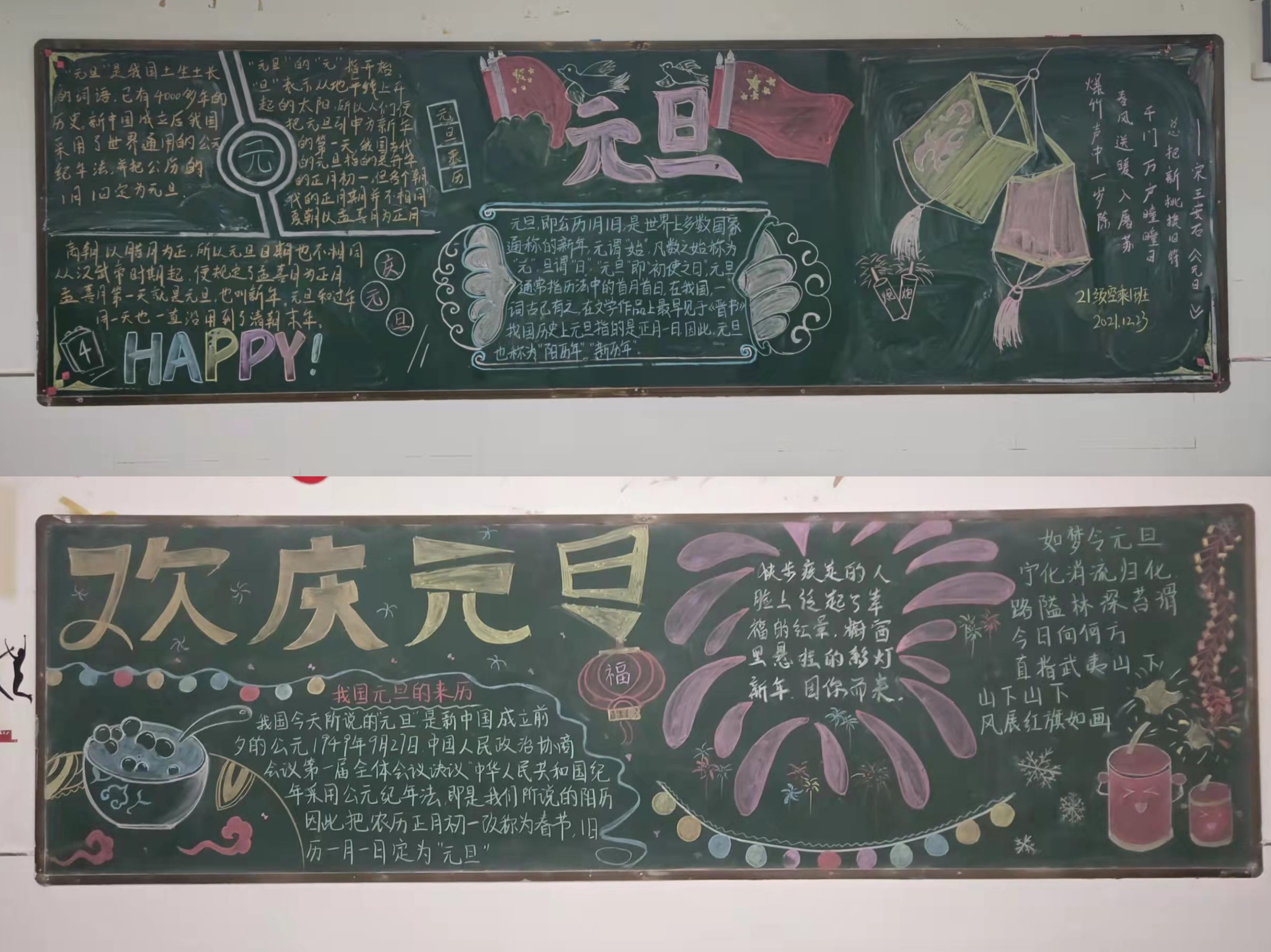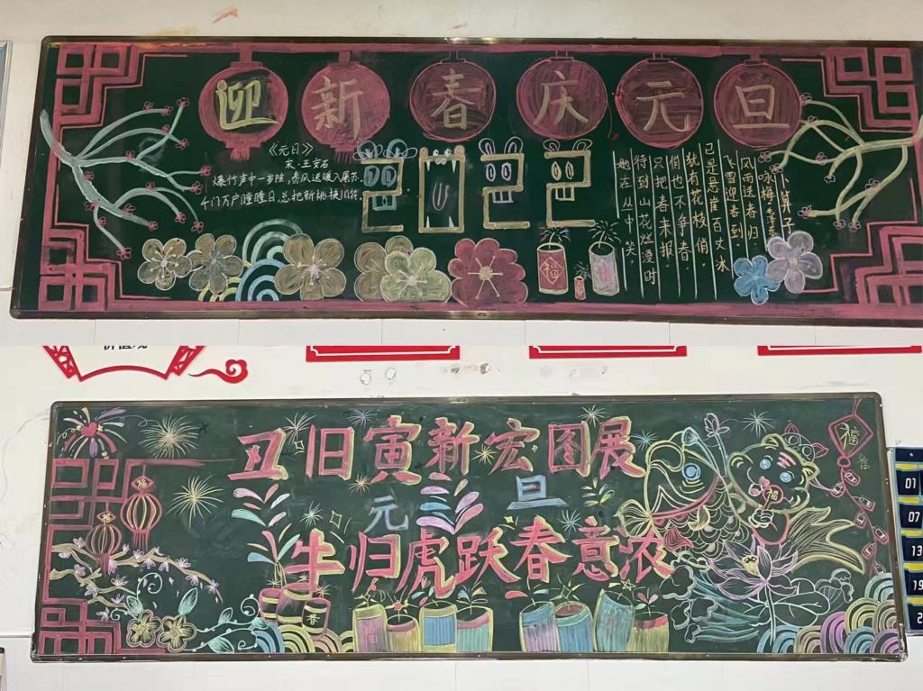一年一度的元旦佳节即将来临,为了烘托节日气氛、营造浓厚的校园文化氛围,于2021年12月28日各班级开展了以“庆元旦,迎新年”为主题的黑板报活动。
