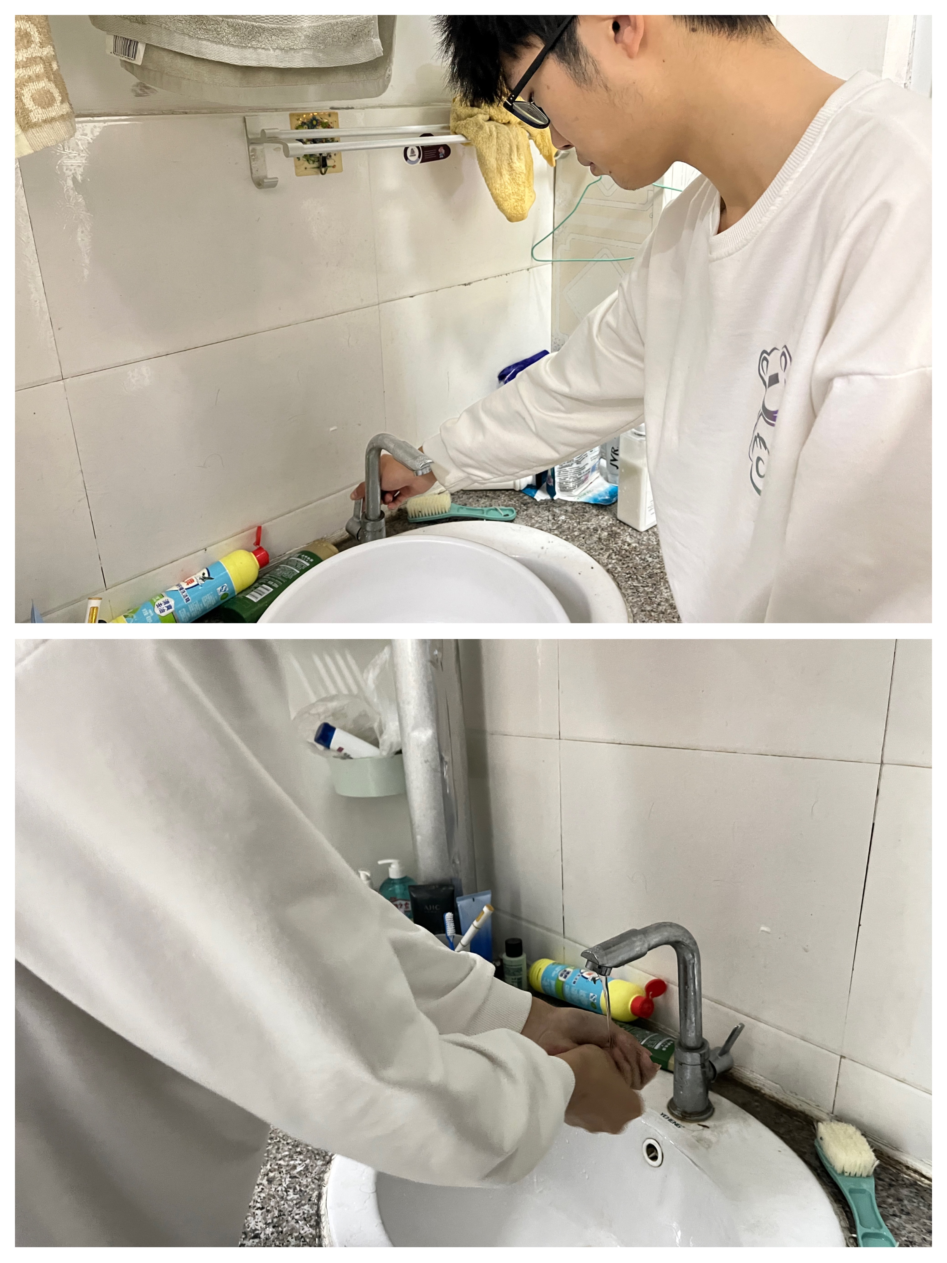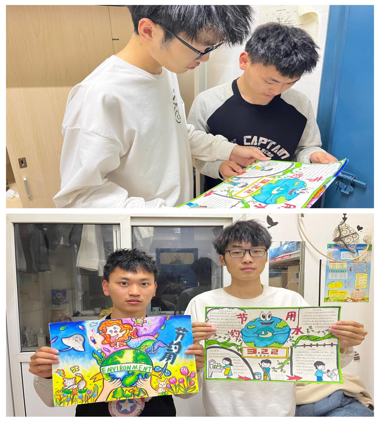 我院志愿者们在致学楼、宿舍等区域检查用水设施是否漏水,并引导同学们养成节水、爱水、惜水的传统美德。
