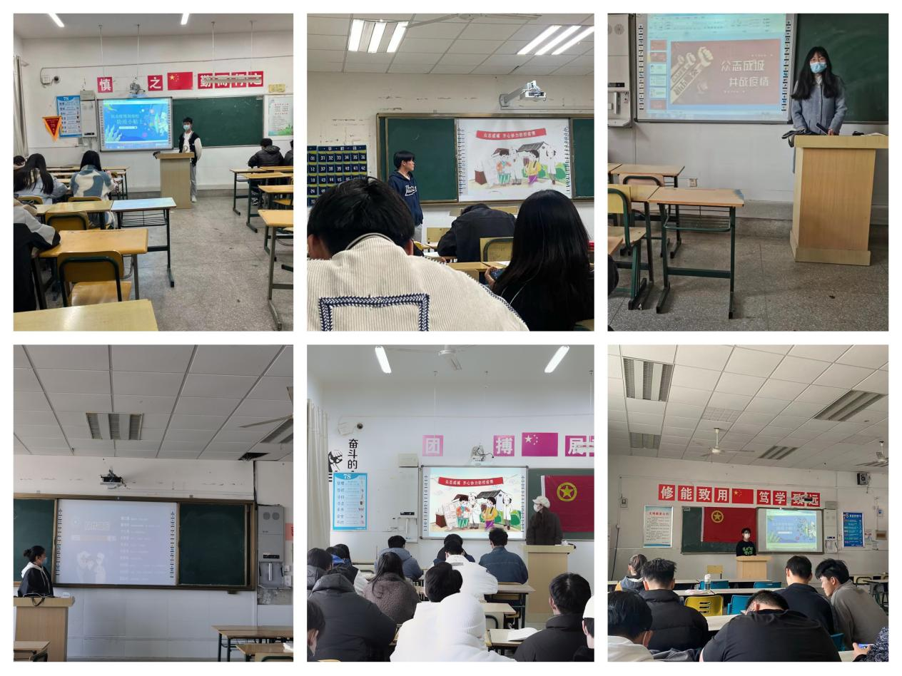 “疫情就是命令,防控就是责任”,各班团支书组织班级学生观看防疫短片,让学生进一步了解防疫知识和防疫的方法,了解我国战“疫”的艰辛过程和取得的巨大成就,并向团学青年们提出:一要认清当前疫情形势,坚持防疫抗疫不可松懈,做好疫情防控的各项工作;二要发扬艰苦奋斗精神,克服各种困难,在疫情期间自觉以严格标准要求自己;三要发挥先锋模范作用,团结带领全体同学勠力同心、共克时艰。四要珍惜在校时间,及时“充电”,加强知识储备,真正做到品学兼优。