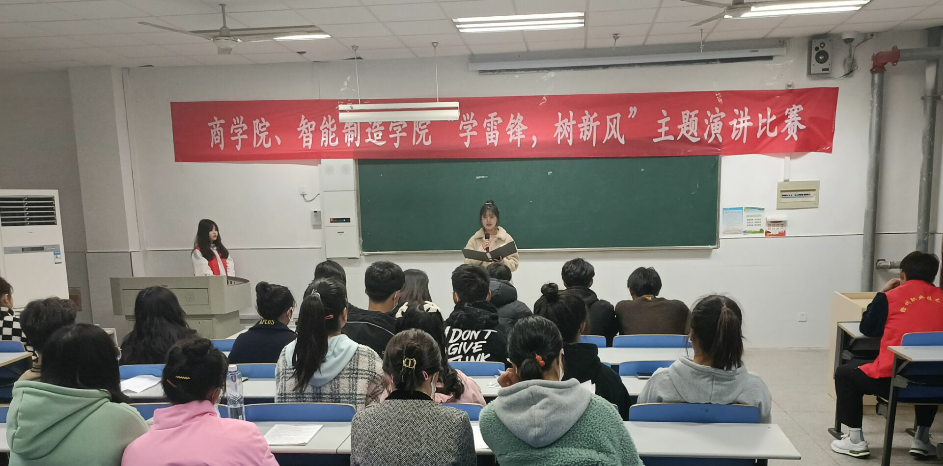 为了学习雷锋精神,弘扬中华民族的传统美德,智能制造学院、商学院联合举办了“学雷锋,树新风”主题演讲比赛。