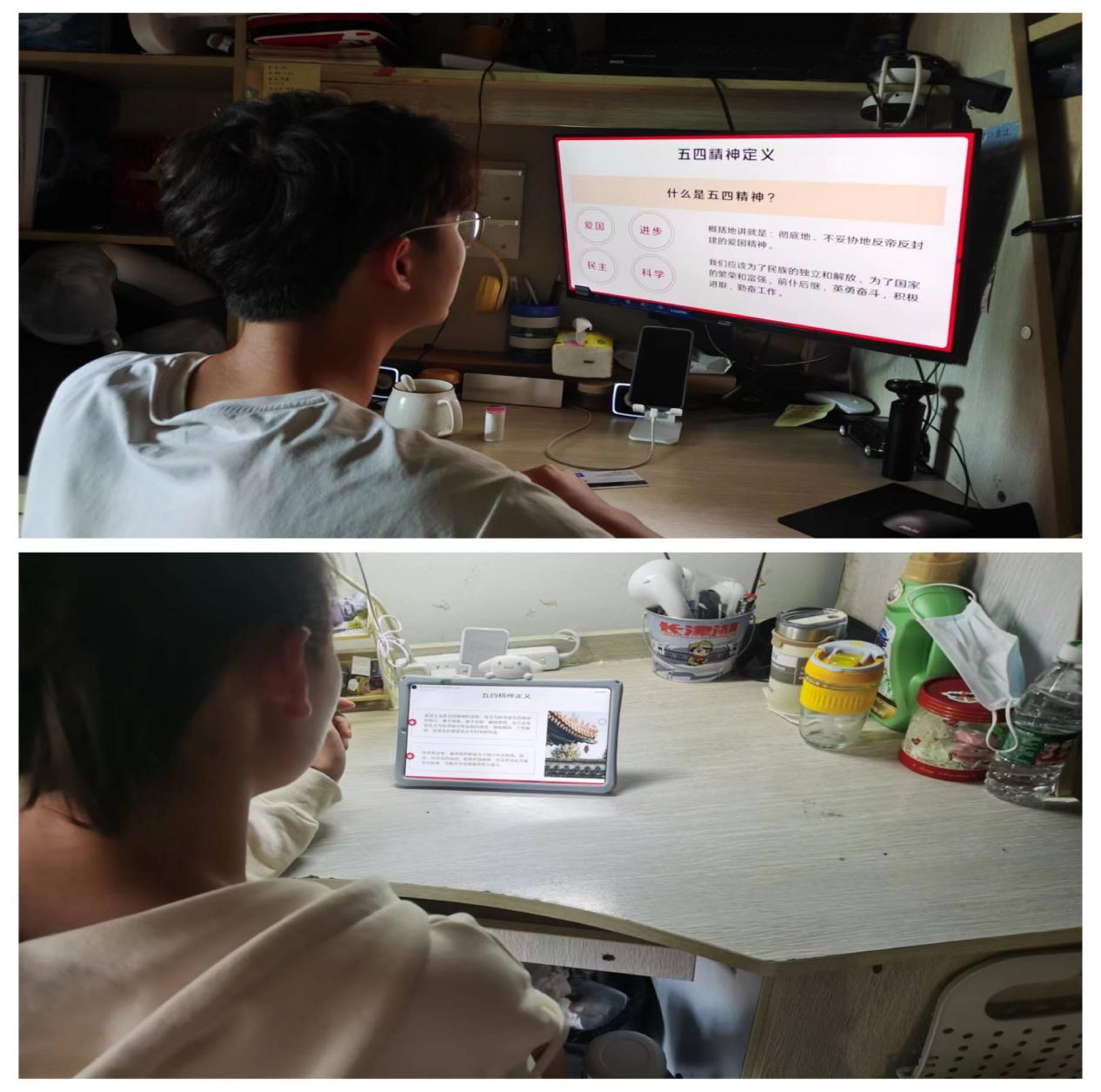 薛泽厚通过PPT向同学们介绍了“五四”精神的定义、内涵、五四运动的意义及同学们如何传承“五四”精神,活动中同学们认真的观看并记录。