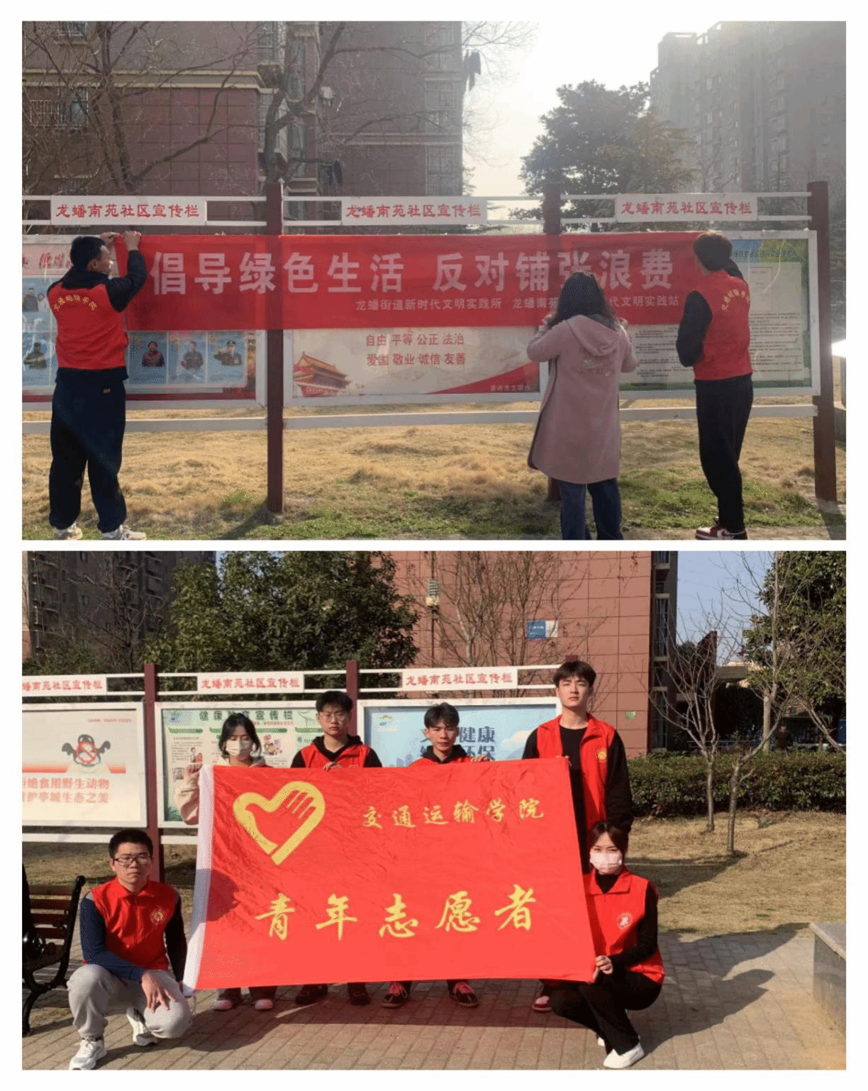 为了进一步增强人民群众交通安全法规意识,,倡导绿色、低碳、文明的出行理念。3月6日,交通运输学院组织志愿者走进龙蟠社区开展“绿色生活、文明交通”宣教活动。