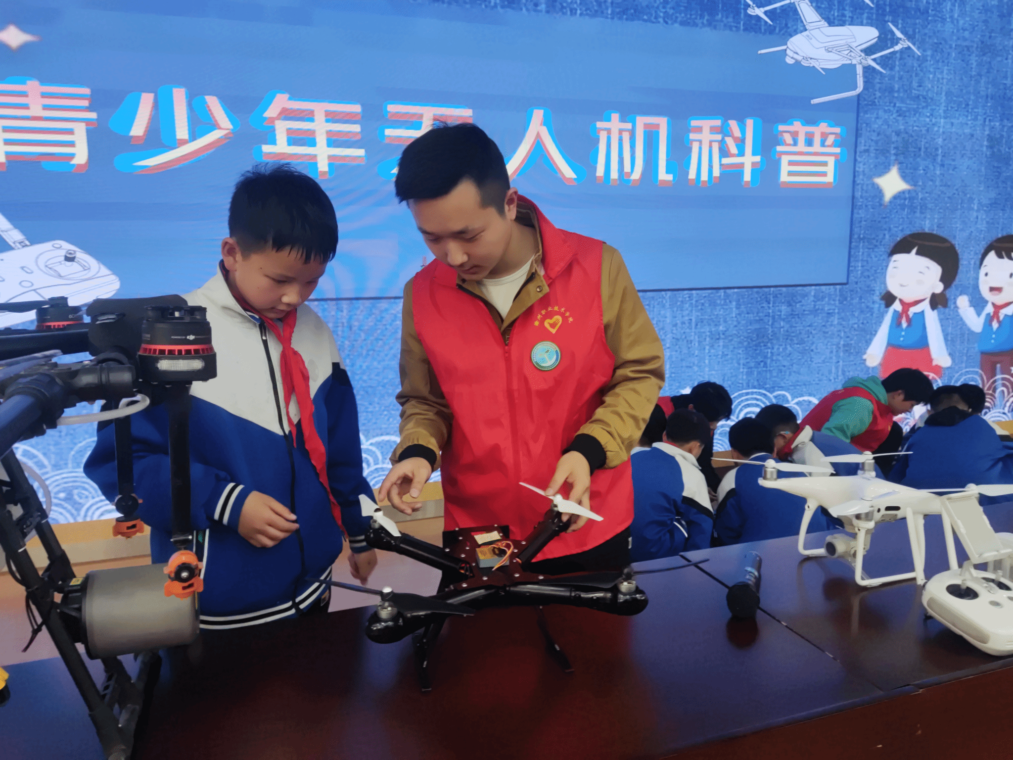 鲲鹏展翅,鸿鹄高翔,青少年应该从小树立远大志向,坚定理想信念。为让青少年感受科技魅力,推动科学技术知识走进中小学,提升中小学生对无人机的兴趣,3月15日下午,智能制造学院竹蜻蜓青年志愿者服务队在滁州市龙蟠小学开展了一场以“探索科学,你我童行”为主题的科普教育活动。