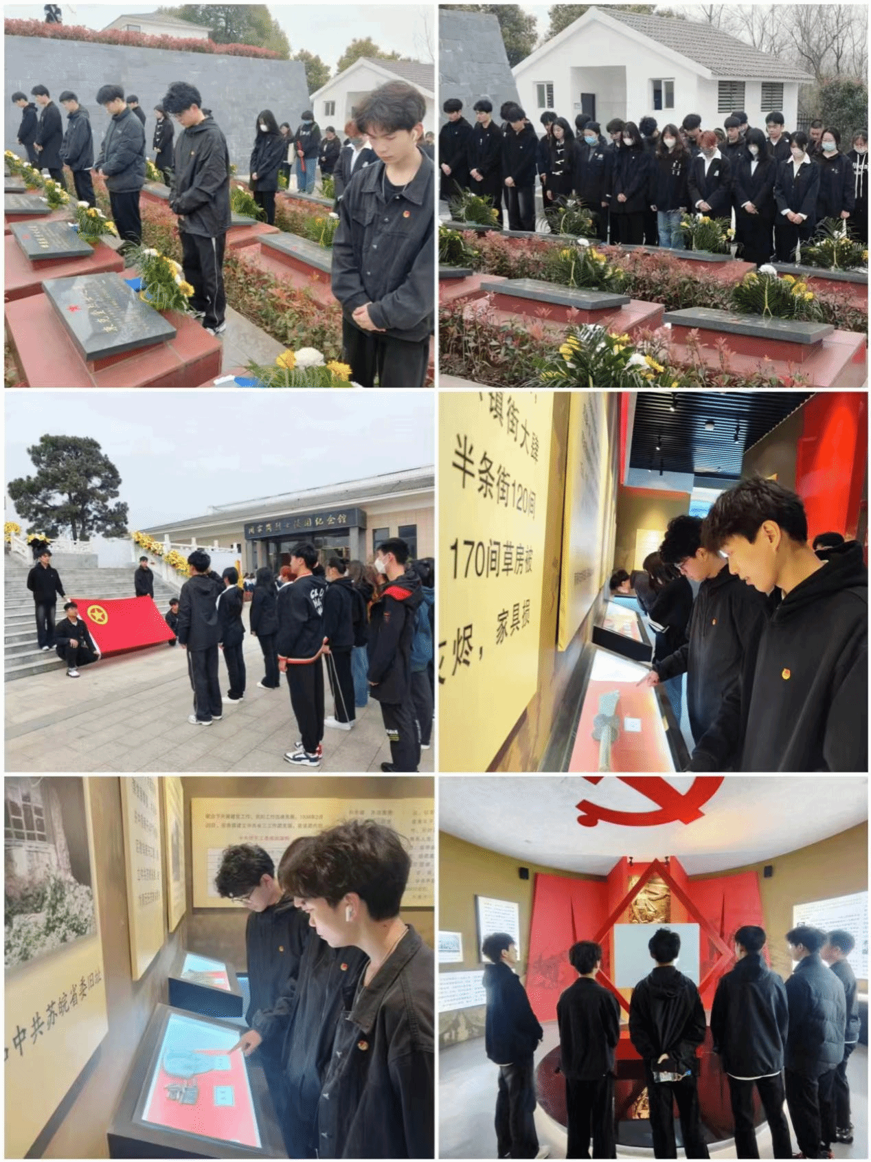 活动中,全体青年学生在庄严肃穆的烈士公墓前,低首肃立,向为革命解放事业英勇献身的烈士默哀,敬献花篮后,大家依次缓步绕行,深情瞻仰烈士公墓、烈士墓区,向革命先烈表示崇高的敬意。同时,在烈士纪念碑前重温入团誓词,活动最后集体参观了烈士事迹陈列馆。