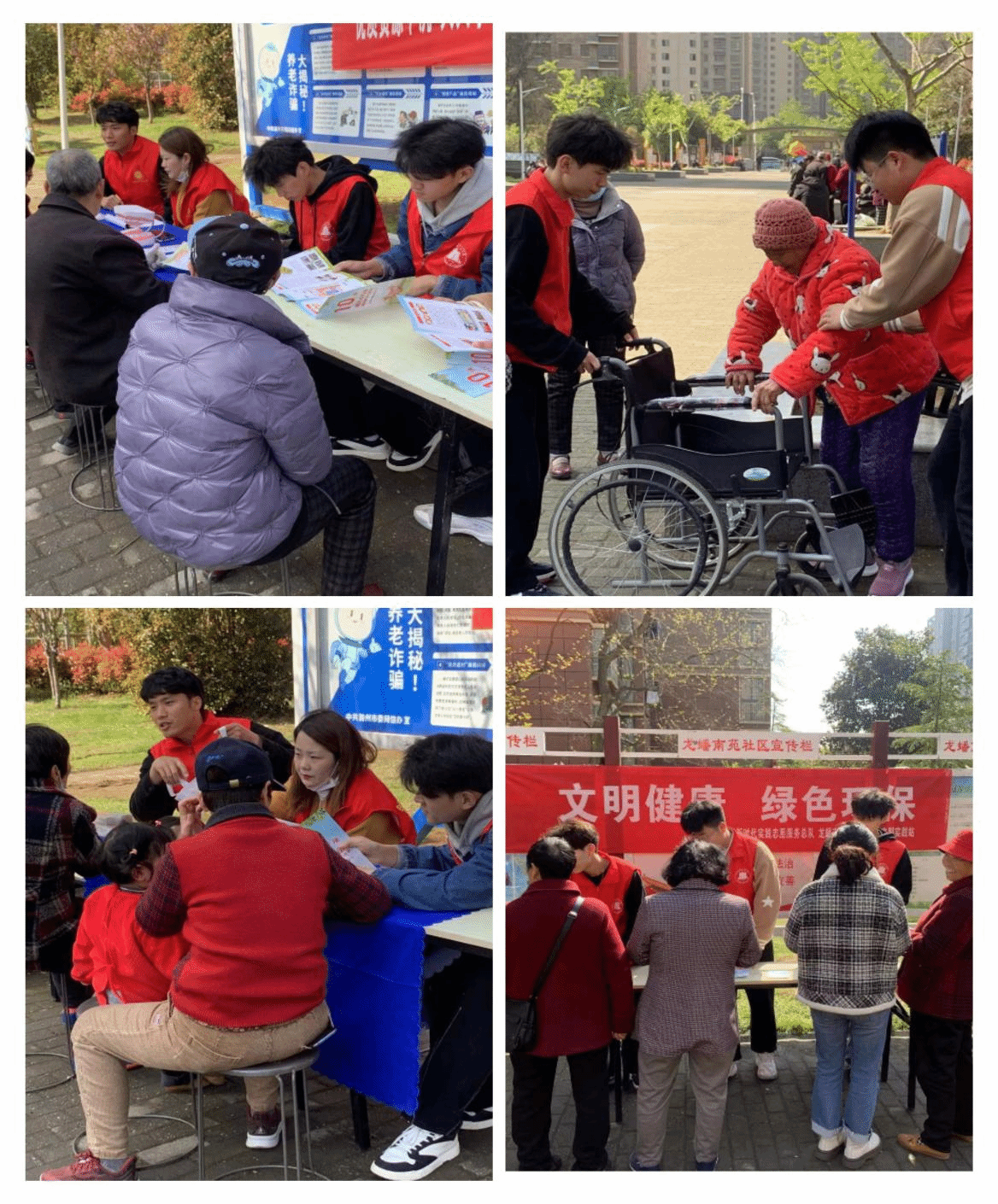 活动中,为引起广大居民群众对卫生健康工作的关注,我院青年学生通过发放宣传画册、张贴宣传海报、电子屏滚动播放等方式向居民们宣传相关知识。志愿者配合摩汀口腔医院的医生着重讲解了老年人佩戴假牙的注意事项和一些关于牙齿的一些问题。倡导居民朋友们将公益广告发布到社区网格群和朋友圈,养成“绿色出行、低碳生活”“光盘行动”“垃圾分类”等良好的行为习惯。