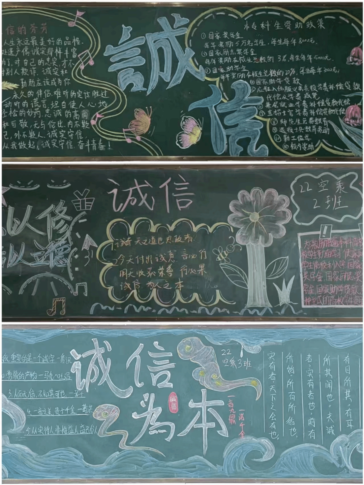 为进一步弘扬传统美德,推进诚信校园创建,营造“诚信校园”浓厚氛围, 5月18日,交通运输学院开展“守信立世,真诚润心”主题黑板报活动。