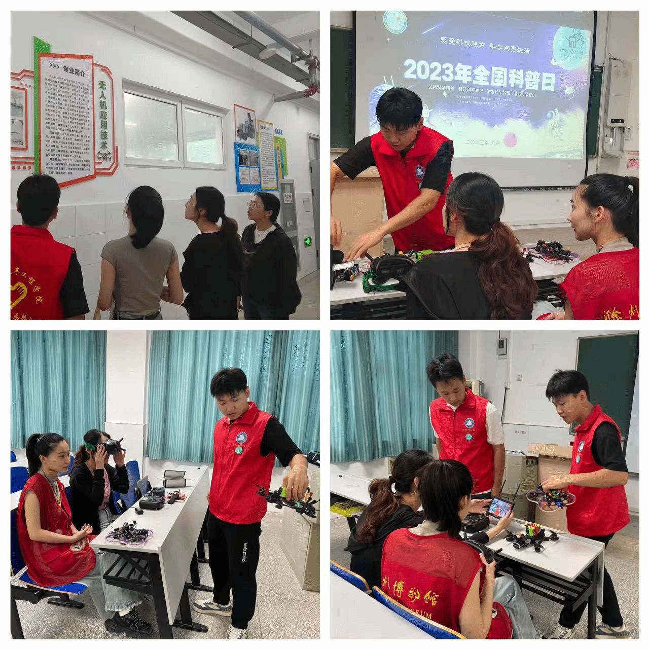 为促进双方交流学习,随后竹蜻蜓青年志愿者服务队的同学们用自己所学专业知识,向博物馆工作人员介绍了多种无人机。