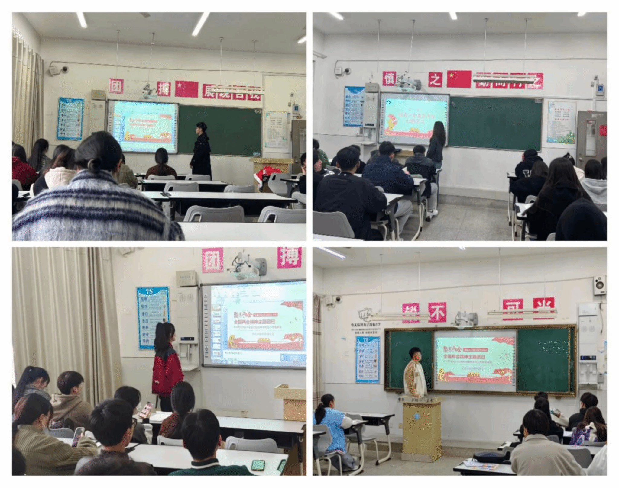 各班团支书带领同学们了解两会的相关知识,强调2023年是全面贯彻落实党的二十大精神的开局之年,也是全面建设社会主义现代化国家新征程起步之年,我们要深入学习领会,把握核心要义,切实把思想和行动统一到学校决策部署上来。本次主题团日活动,进一步激励了广大青年学子坚定理想信念,练就过硬本领,不断夯实学习成果,矢志践行安不忘危、兴不忘忧。
