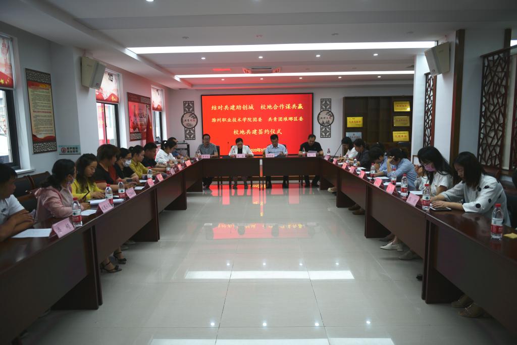 为进一步建设好博官网的志愿服务品牌,给青年志愿者提供优良的实践基地。5月29日上午,校团委与琅琊区团委的志愿服务校地共建签约仪式在丰山街道会议室举行。共青团滁州市委书记孙静,校党委委员、宣传部部长、学生处处长李平权,琅琊区委副书记刘晋勇、校团委书记朱婷婷、共青团琅琊区委书记徐晶晶参加了此次签约仪式。