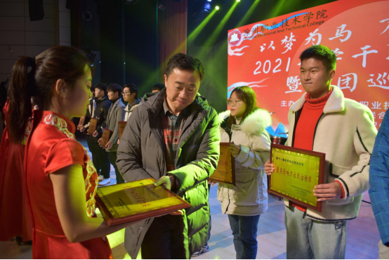 在晚会中,校团委对在社团文化艺术节里表现优秀的社团进行了表彰,由校党委副书记杨家庆对获奖社团进行了颁奖。