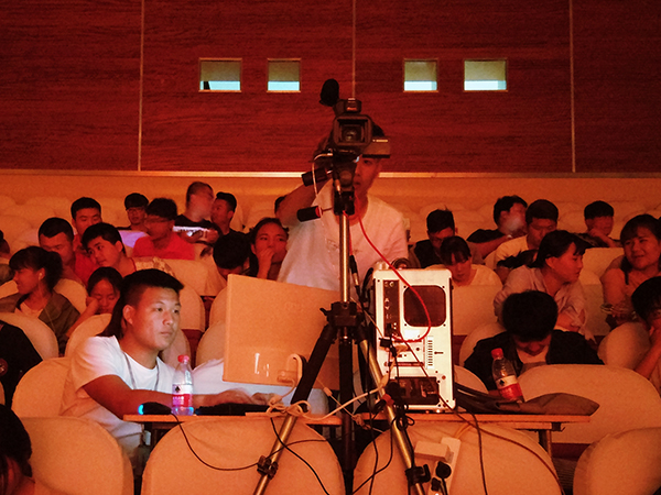 我系工作人员花了两个小时左右的时间在现场架设台式机,摄像机,麦克风,网线,电源线,比赛开始后默契配合,紧张工作两小时,为本次活动提供了优质的服务。比赛现场使用微信上墙、弹幕的形式与观众活动,同时开通直播让场外的同学们通过手机观看节目,为支部同学加油助威,同学们对这一创新形式的反响十分热烈,纷纷参与其中。