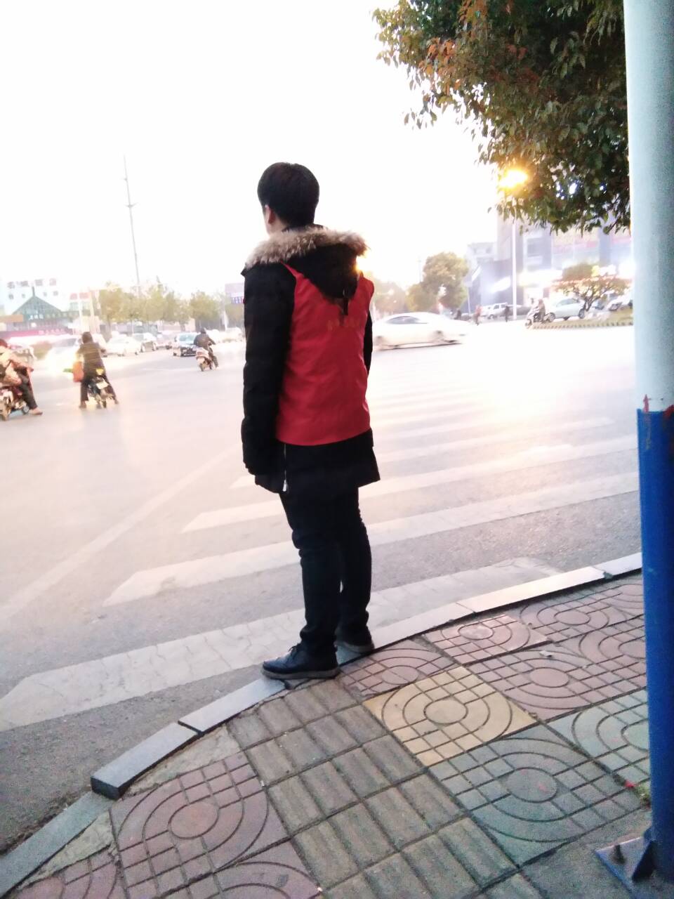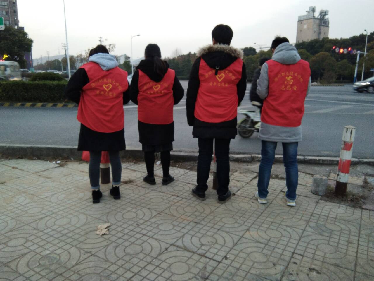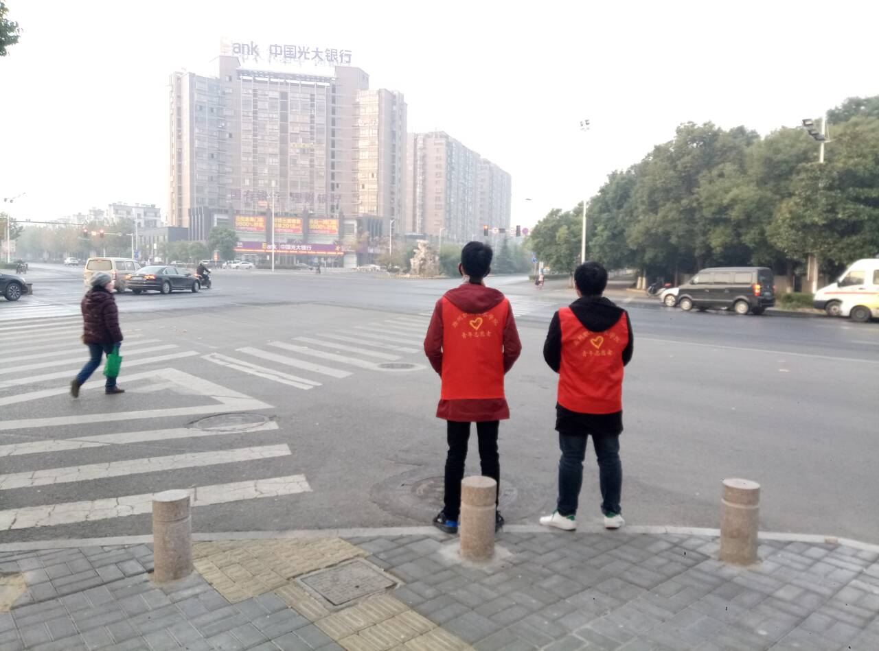 今天早上6点半志愿者们准时到场,他们站在路口的几个入口处,向过往行人进行交通安全常识宣传,劝导机动车及非机动车不要闯红灯,引导行人走斑马线,主动搀扶和帮助行动不便的老人过马路。志愿者们忍受着天气的寒冷坚守下去,他们一丝不苟的工作态度、良好的精神面貌和文明素养受到交警们和过往行人的高度评价,不少违规违章者受到志愿者精神的感染,表示今后一定遵守交通规则。