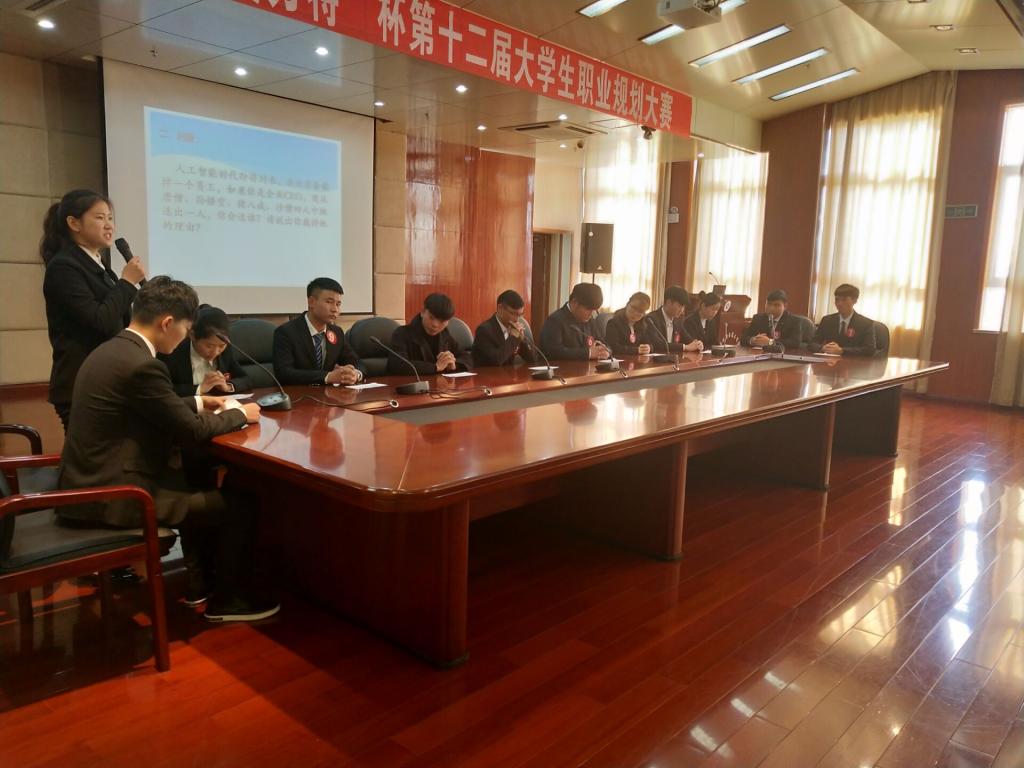 12月20日下午2点30分,我院于综合楼11楼举办第十二届大学生职业规划大赛决赛。经过前几轮激烈的角逐,我系杨冬同学顺利挺进决赛圈。