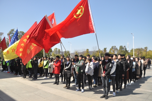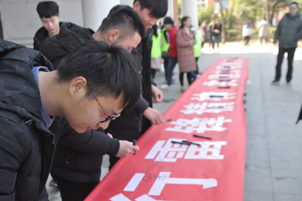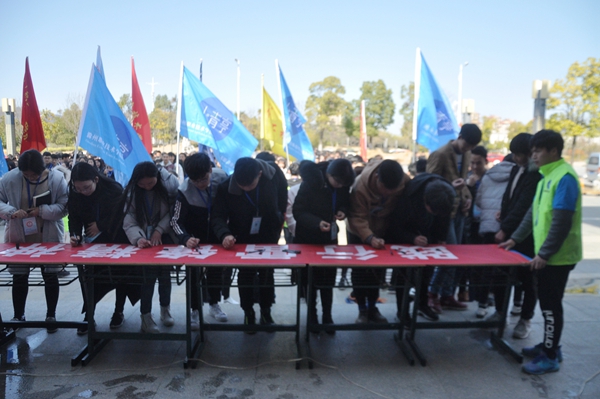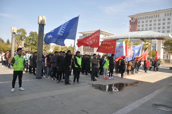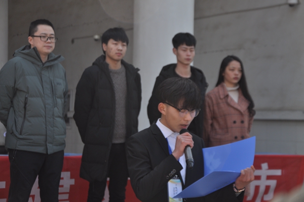 仪式刚开始,由领导发言宣扬雷锋精神,接着学生代表也表达了学习精神。紧接着举行了授旗仪式,配合着音乐,各系旗手挥舞着旗帜。最后由到场人员上台进行签名,明确雷锋精神。