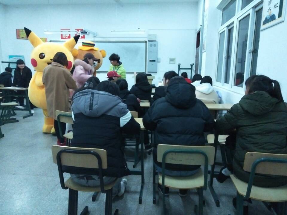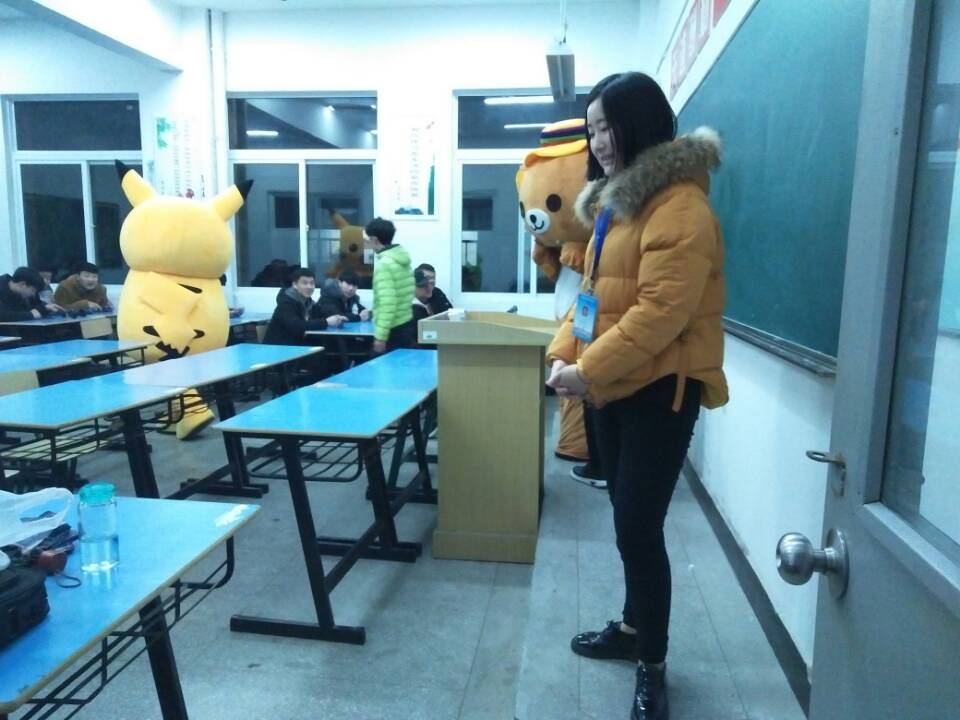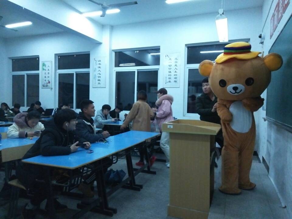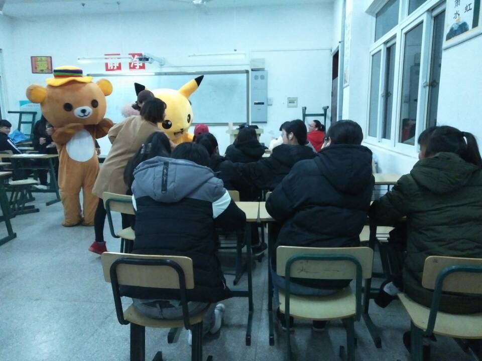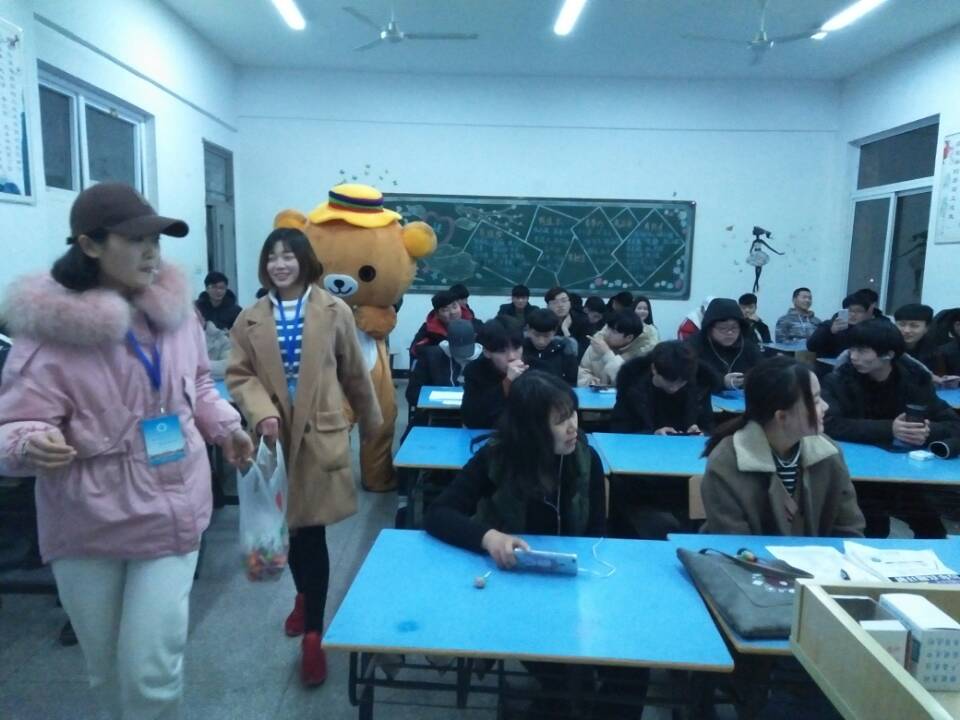 “打扰一下!同学们好,我们是我系生活部的成员,今天是女生节,祝所有女生节日快乐!”话音一落,两名女生一齐给各班同学发糖果。期间有布朗熊,皮卡丘前来助兴!女生们都激动不已,纷纷和布朗熊、皮卡丘打招呼、握手、拥抱等。一颗颗糖果,一句句情真意切的话语,让女生们感受到了阳光般的温暖。无论是大一,大二女生,还是忙着实习的大三师姐,都能在微冷的寒风中收到这一份温暖。