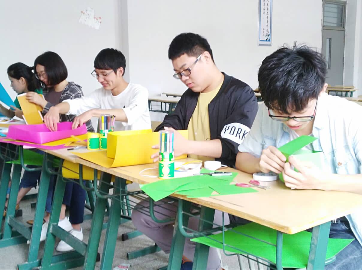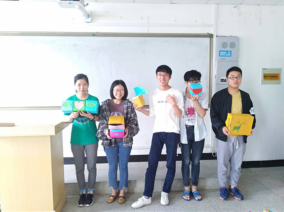 活动过程中,各系学生将原本没有任何造型的硬质纸板手工做成了一个个生动有趣的盒子造型,过程中采用了折、剪、裁、拉的方式,体现了学生们的心灵手巧。而后又在原本无色无图的手工盒子上绘制出新颖的创意图形,最终通过学生们的一双双巧手,一个个鲜活生动并且实用的手工收纳盒“诞生”了。