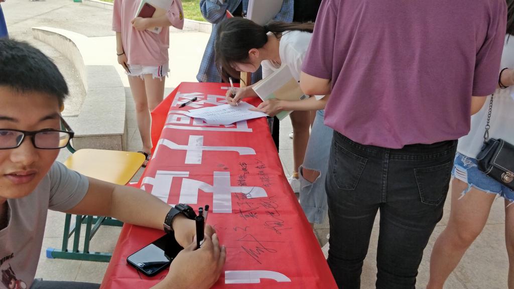 因诚而立,严于律己.通过签名宣誓活动,不仅让同学们认识到诚信的重要性,更让同学明白要拥有一颗感恩的心。