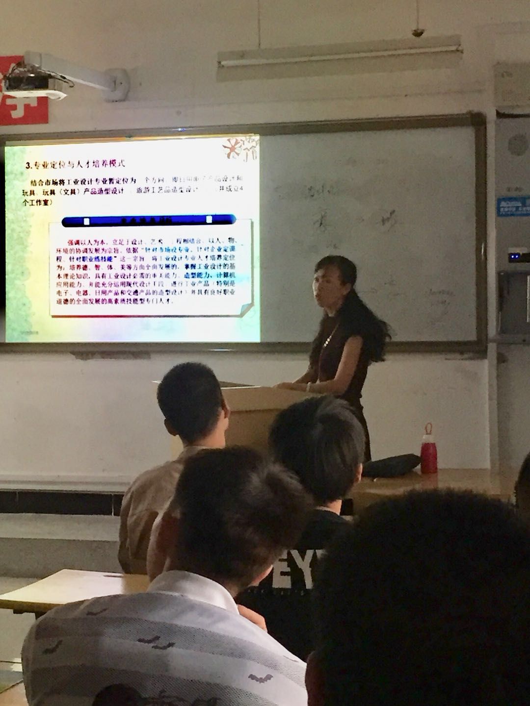 专业介绍从工业设计4.0开始谈起,观看宝马生产流水线视频,阐述信息化、智能化、定制化在工业设计中的特色,并就工业设计专业定位、培养目标、就业方向、前景、课程设置、实习实训场所进行深入讲解。系副主任闻建强从学生的择业观、人生观、价值观畅谈工业设计专业对其影响,希望同学们在接下来3年的学习过程中,树立学习目标、强化学习意识、学用结合,有所收获。