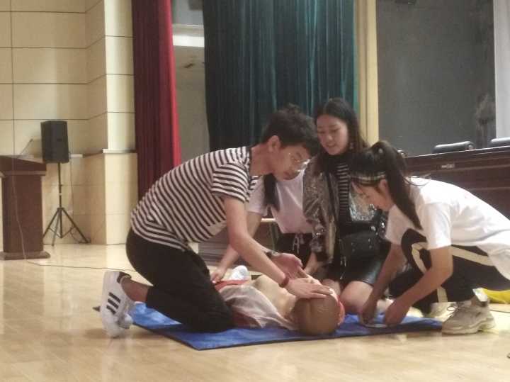 2018年9月11日上午,传媒系在学院礼堂开展2018级新生军训应急救护培训,我系18新生全体参与,系部红十字会成员主演此次培训活动。