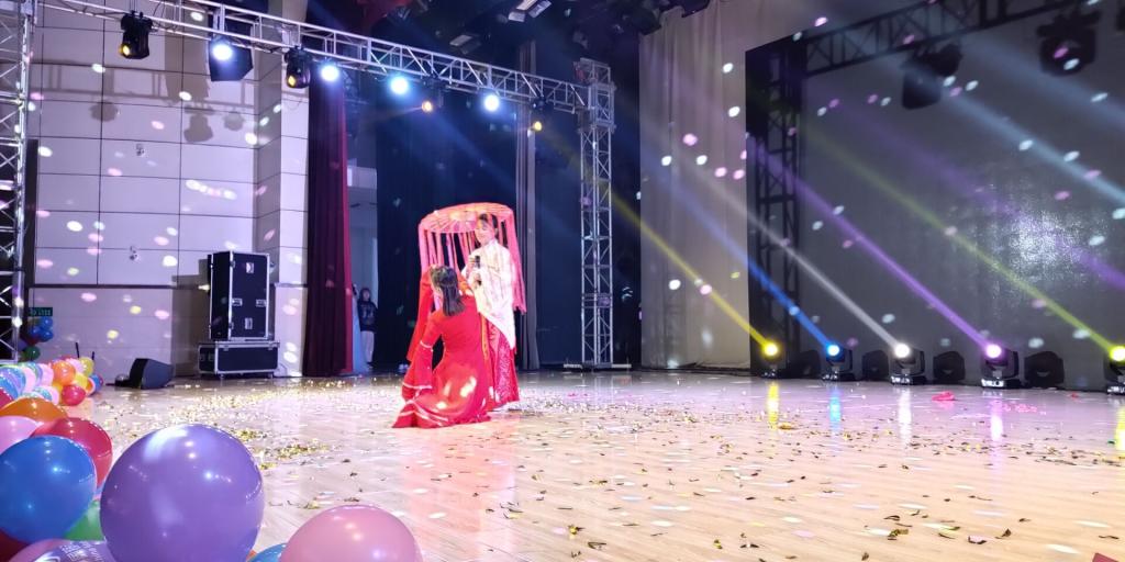 传媒系艺术团节目《牵丝戏》在现场获得了观众的阵阵喝彩。优美的旋律、动人的舞姿、美妙的歌声让观众身临其境。
