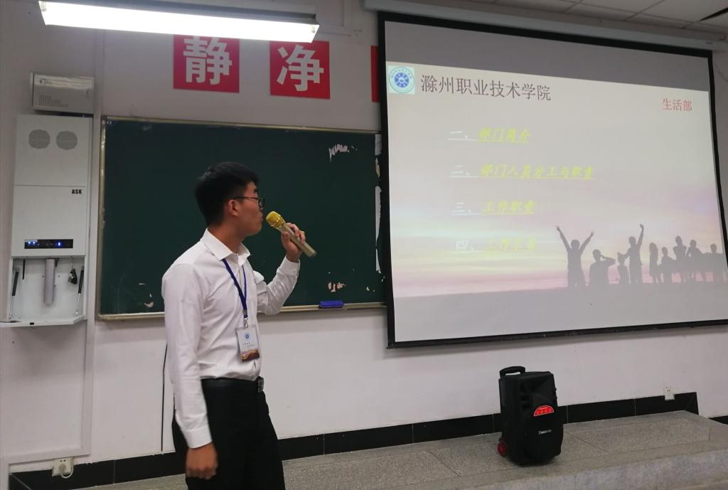 为给2019级新生提供一个锻炼自我,展示自我,提升自我的平台,同时也为学生会队伍充实优秀人才,确保学生会工作可持续的发展。9月11日晚,传媒与设计学院学生会招新工作在北阶102教室顺利进行,并得到了2019级新生的积极响应。大二干事向新生介绍6s宿舍文化的重要性,并鼓励新生积极申请6s宿舍,随后新生辅导员吴涛老师上台讲话,再次强调6s宿舍的重要性。