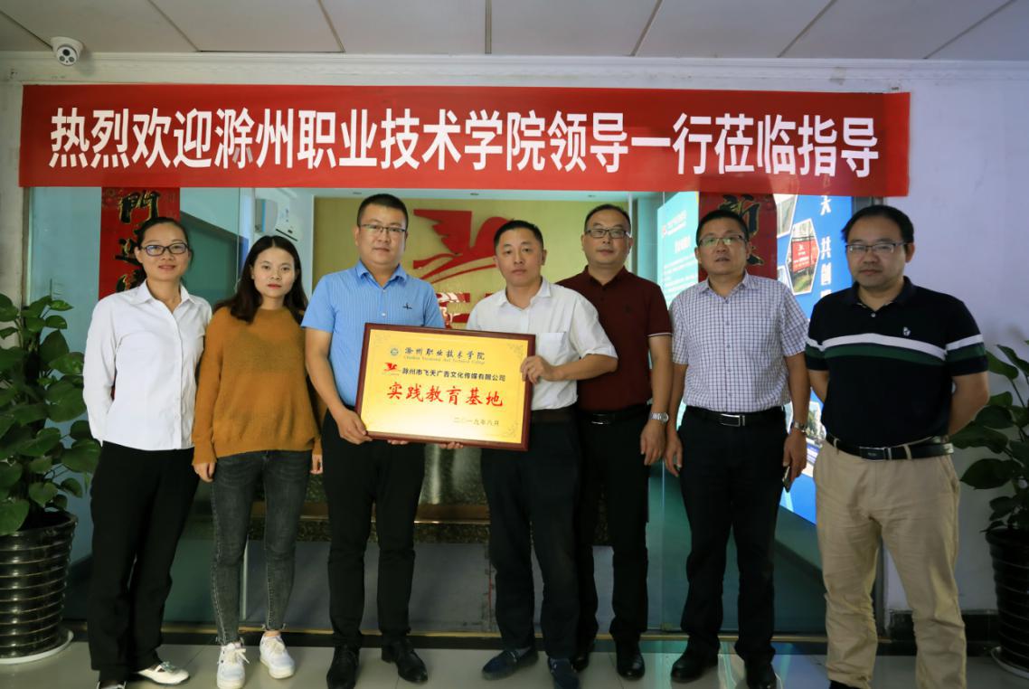 近日,“好博中国官网入口传媒与设计学院实践教育基地”挂牌仪式在滁州飞天广告文化传媒有限公司总部成功举行。飞天广告文化传媒有限公司相关领导、好博中国官网入口传媒与设计学院领导、艺术设计教研室主任、学院教师党支部和部分教师代表参加。