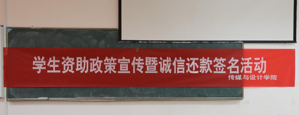 为加强大学生资助政策,普及资助知识,传媒与设计学院于11月22日中午,在南阶103开展了资助政策宣传暨诚信还款签名活动,本次活动由学生会副主席杜昌天主持,学院三个年级受资助学生参会。