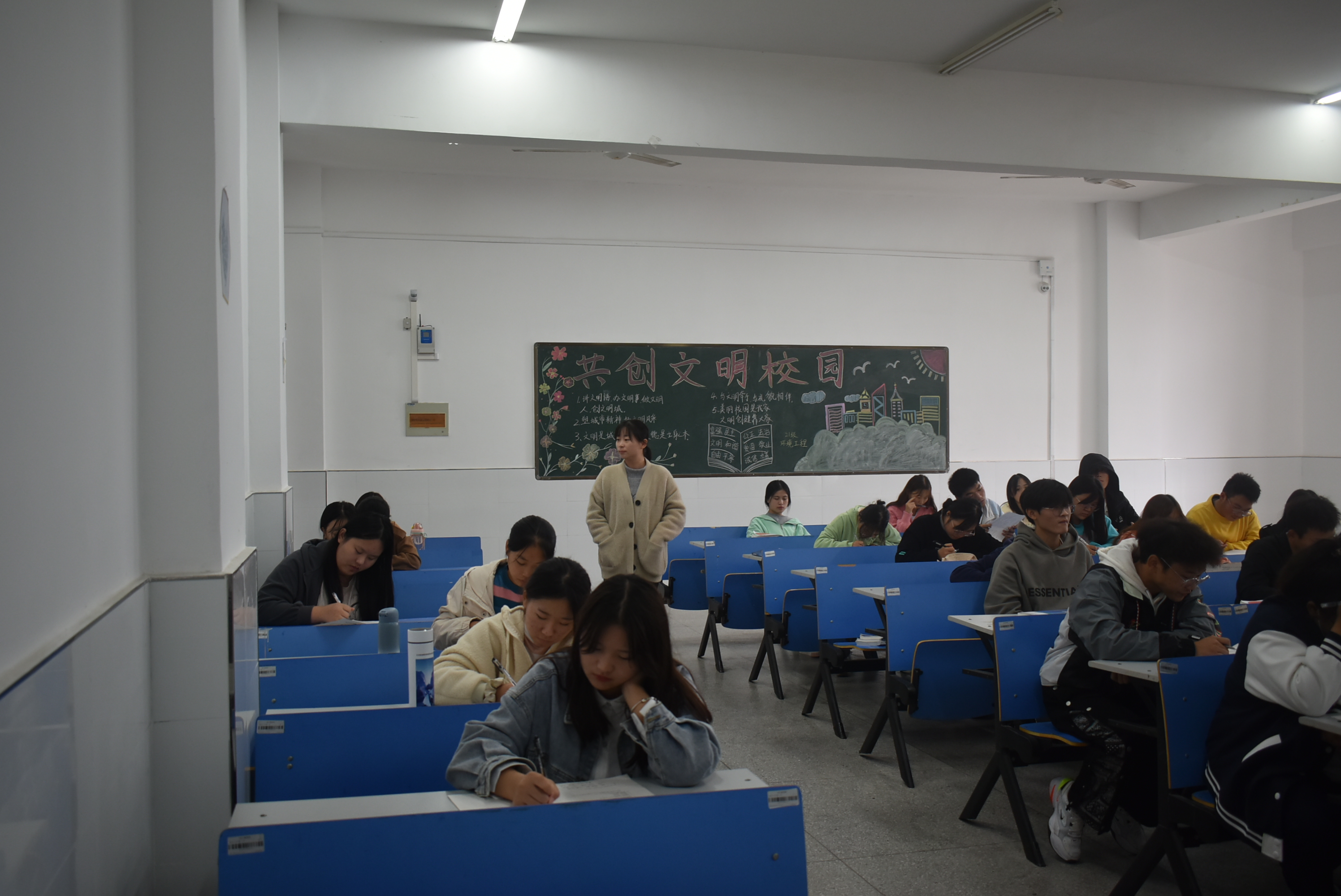 考试采取闭卷形式,以考促学,督促新生对学校各项管理规定的学习。考试题型分为填空、单选、多选、简答、论述等,内容涉及大学生日常管理、学籍学业管理、违纪处分、奖勤助贷等方面规章制度,全方面考察学生对《学生手册》的学习情况。考试期间,考场秩序井然,同学们都奋笔疾书,认真答题,态度端正,严格遵守考场纪律;监考员们认真严谨,巡考员们不时在考场巡查,关心同学们的答题情况,充分体现了我院良好的学风考纪。