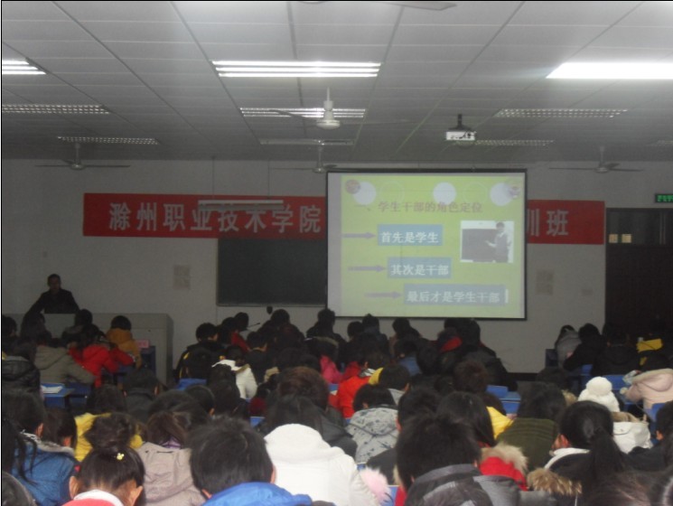 此次培训共邀请了四位教师主讲,他们分别是:学生处李平权处长、基础部党总支李超书记、思政教学部李爱红副主任、学生处张军副处长。培训班围绕“如何做好团学干”、“团学干如何提高修养,发挥模范带头作用”、“团学干的服务意识”、“团学干的自我调适”等主题开展系列讲座。参加此次培训班的学员包括:2011级各班班长、团支部书记、各系部团总支委员会成员、院学生会、社联11级部分学生干部。
