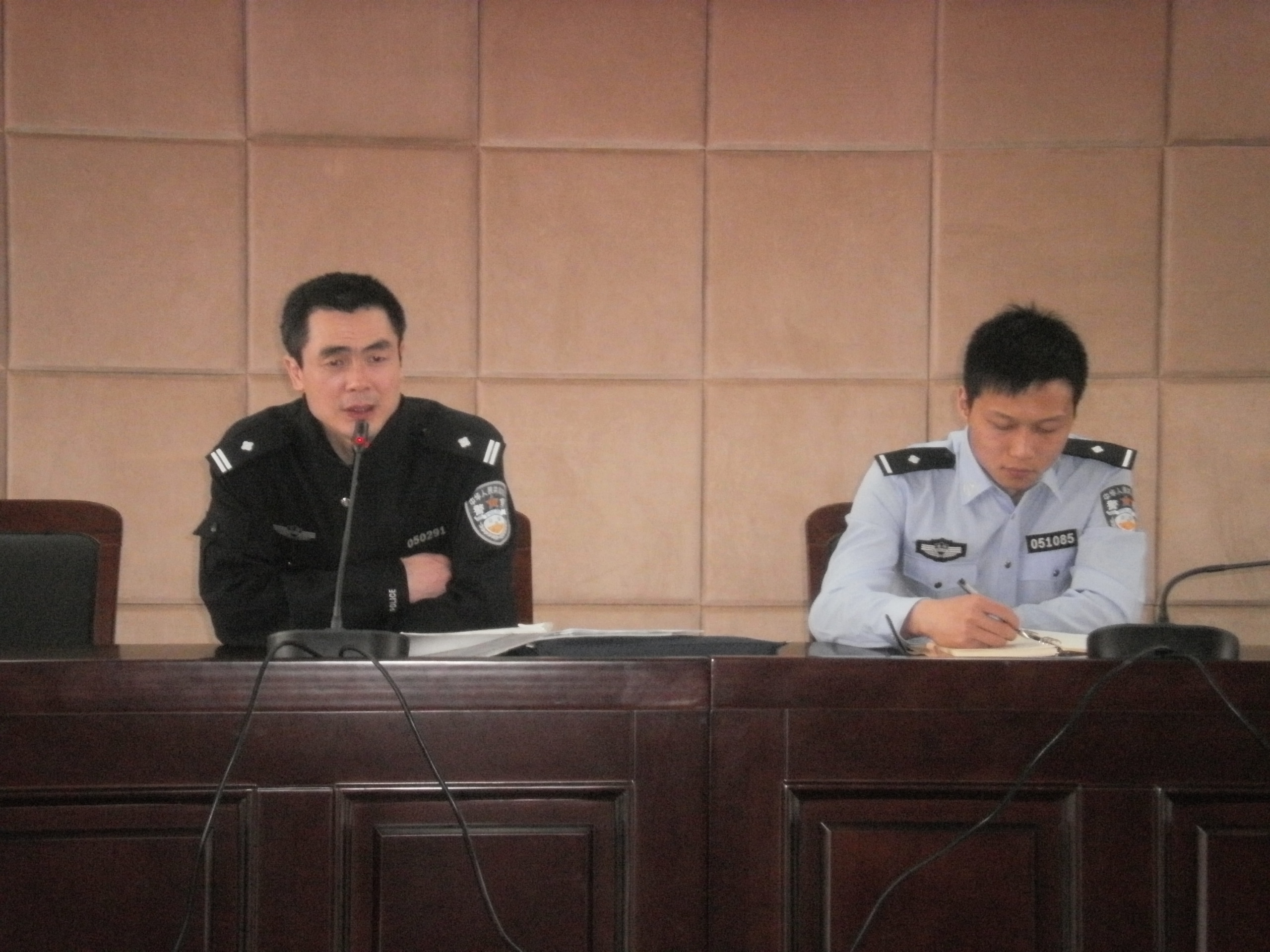 滁州市公安局禁毒支队陈万社教导员(左)与开发区刑警大队李超警官(右)正在进行教育讲座