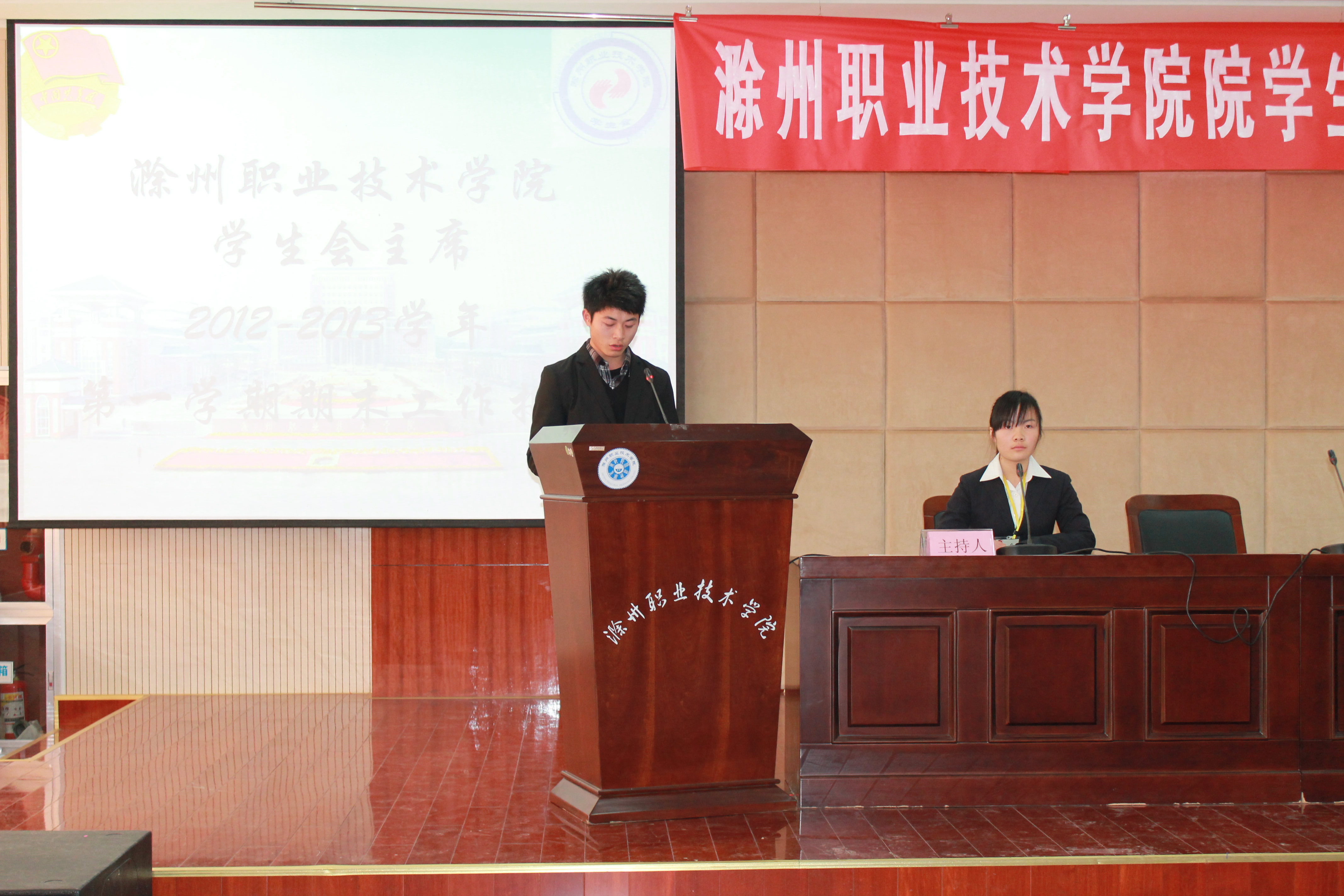 首先,院团委程诚副书记宣读了新一届主席、副主席以及各部部长的任职名单,院学生会主席檀震发言,对本学期工作思路和工作开展做了总结,各系部学生会主席做总结发言。院学生会各部门部长从不同方面就本部门的特色工作进行了汇报,各部门在汇报中肯定了优势,反省了不足,有效地促进了工作的交流与沟通。