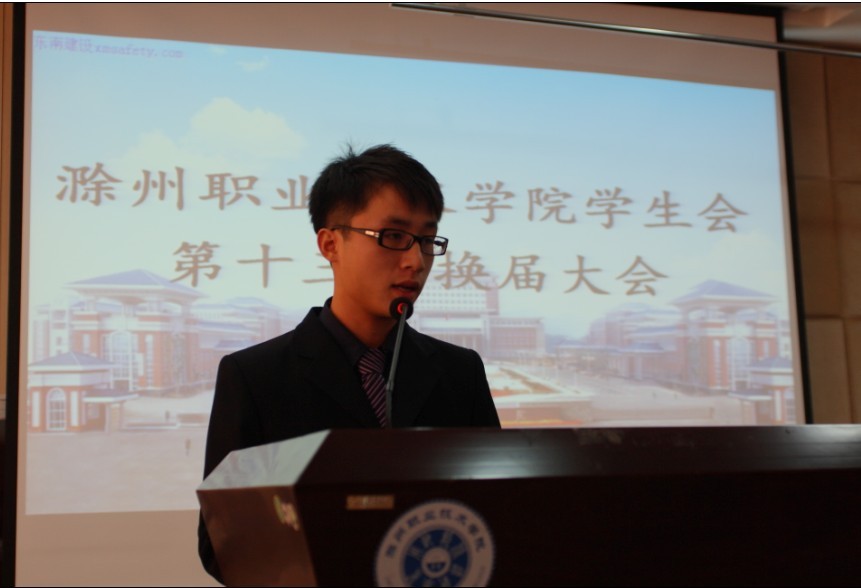 2013年11月11日12时在五楼报告厅隆重举行了院学生会第13届换届大会。院团委书记王蓓蓓,副书记刘杰、程诚,院学生会指导老师朱婷婷,社联社团指导老师甄帅出席了此次会议。