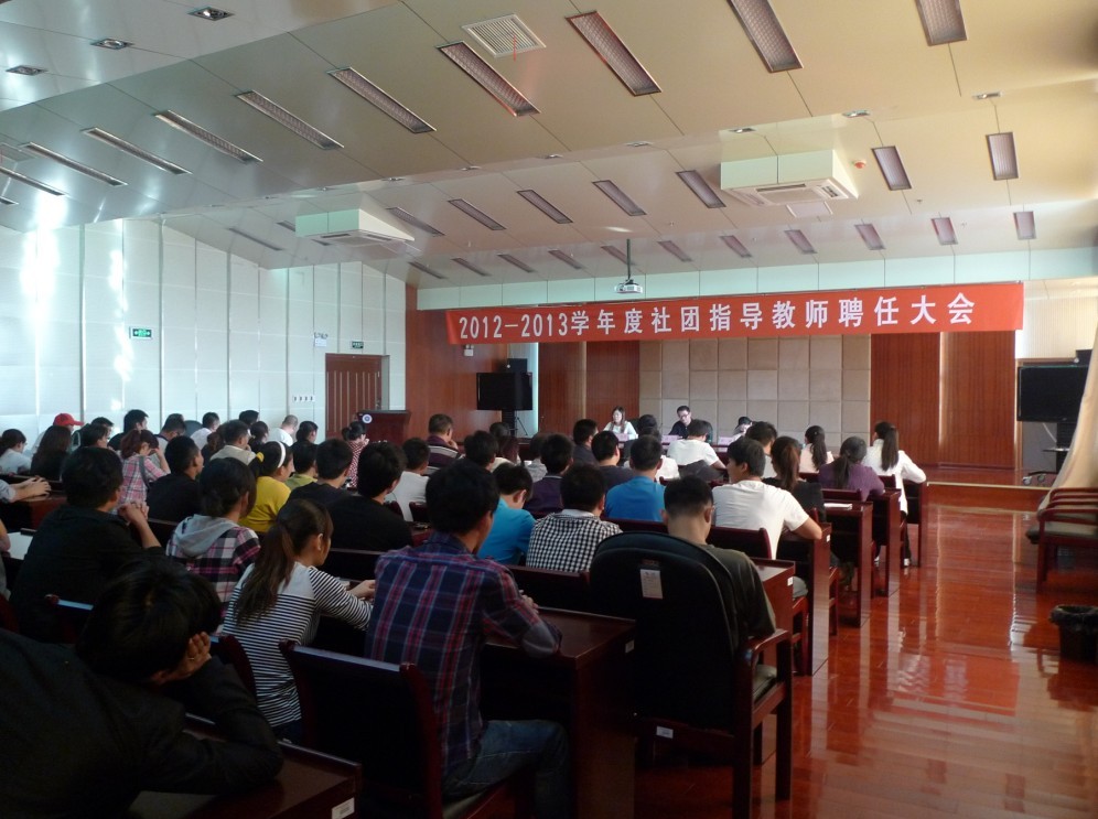 为进一步加强我院社团规范化、科学化管理,充分发挥社团作用,推进学生社团健康、有序地发展,繁荣校园文化,提高学生综合素质,促进教学相长,10月10日下午4点整,2012----2013学年度社团指导教师聘任大会在我院综合楼11楼隆重举行。各社团指导教师和社团负责人参加了此次会议。院长助理刘宏同志出席了本次会议。会议由团委书记王蓓蓓主持。