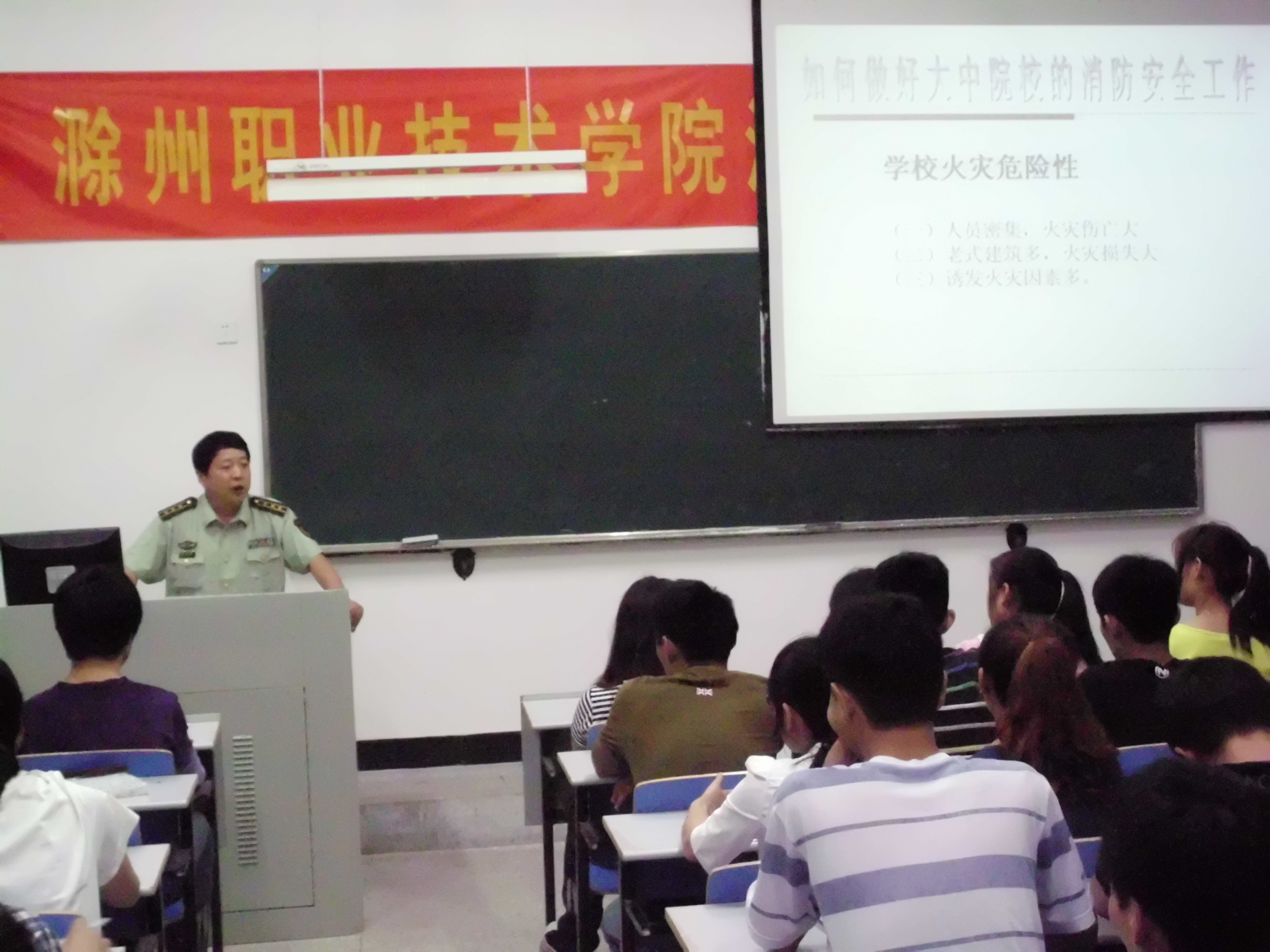 2012年6月6日下午,学院保卫处邀请了滁州市消防支队防火处宋建新处长来院主讲题为《如何做好大中院校的消防安全工作》的知识讲座,艺术系师生参加了此次讲座。宋处长结合了消防安全“四个能力”建设,结合了真实的火灾现场图片展示和案例分析,充分讲述了火灾事故带来的安全危害和深刻的教训,深入地讲解了火灾成因、如何安全逃生和火灾初期扑救等消防知识,切实做好学校消防安全隐患的检查和预防工作,进一步增强师生的安全防火意识、自防自救意识,有效提高了师生的预防火灾和火场逃生自救能力。(陆凤林)