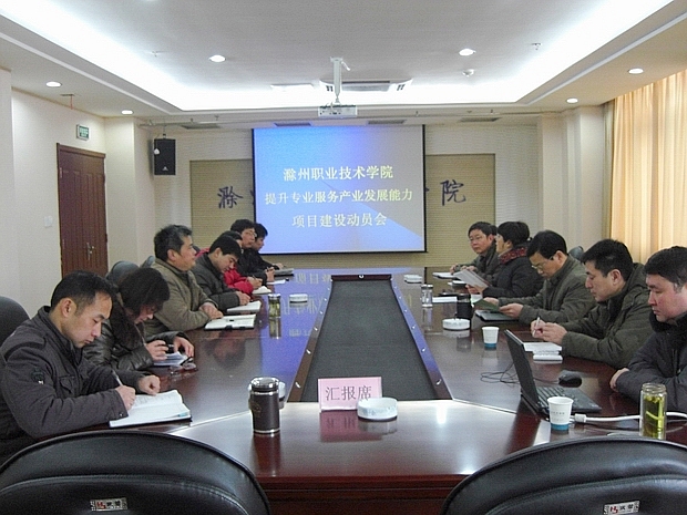 江洁副院长首先传达了1月14 日在解放军电子工程学院召开的“安徽省高职院校提升服务产业发展能力项目建设推进会”会议精神。省教育厅高教处储常连处长在会上强调了项目建设工作中要处理好的8个关系,“一是正确好处理项目申报和项目建设的关系;二是正确处理好内涵建设与服务产业发展的关系;三是正确处理好专业建设与职业、企业、产业发展的关系;四是正确处理好专业建设学校主体与企业多元参与的关系;五是正确处理好专业建设与大职教体系构建的关系;六是正确处理好专业建设中职业性与学术性的关系;七是正确处理好专业建设中产业支撑型、人才紧缺型、特色引领型、国际合作型之间的关系;八是正确处理好重点专业建设和其他专业建设的关系”,并对各高职院校提出了要求,“一是提高专业建设服务产业的认识;二是全面启动,强力推进;三是校企对接,推进深度校企合作;四是加强指导,全程管理”,做好项目建设工作。项目建设委员会李雪秘书长通报了我省高职高专提升专业服务产业发展能力项目建设2012年度工作计划,并对项目建设提出建议:“一是抓好项目建设的顶层设计;二是加强项目的过程管理;三是重视建设成果的积累和推广。”