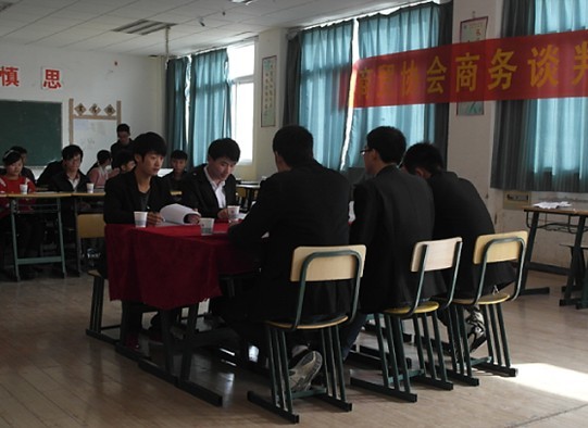 比赛以三人抽签组队模式采用社会上的实事案例作为谈判内容,经过激烈的初赛,最终有6人参加决赛。决赛于11月15号在机电系5403教室举行,商贸协会辅导老师梁金荣、陈中胜老师及社团联合会第六届副主席杨春雪同学担当评委。