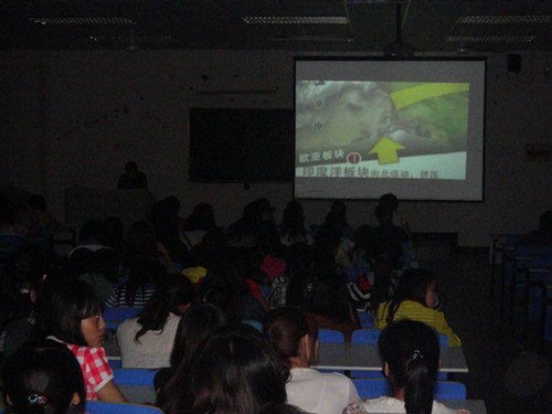 根据经济贸易系党总支的安排,2013年5月27日至29日晚经贸系团总支,学生会组织全系同学在1101教室参加了以防震安全教育为主题的的视频公开课,视频展示了地震对人们安全造成的危害和防震时科学自救及救人的方法。