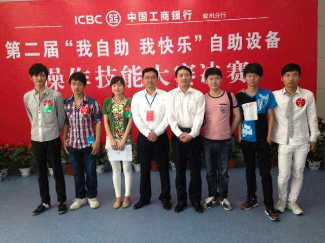 在2013年5月20日举行的中国工商银行滁州分行第二届“我自助、我快乐”自助设备操作技能大赛决赛中,经贸系11级电子商务专业学生喻金、尹学超、余清等三位同学,凭借过硬的心理素质,扎实的技术技能,出色的表现分别获得个人网上银行操作技能比赛一等奖、手机银行操作技能比赛二等奖、优秀奖的优异成绩,并分别获得价值3000元、2000元的奖品。