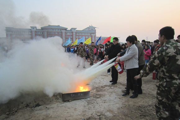 近来,由于秋冬季节气候干燥,许多地方相继出现火灾。为了增强同学们的消防意识,使他们掌握一定的灭火技能。我院组织全体学生会成员,各班生活委员,新校区全体义务消防队员和全体辅导员参加了这一活动。2010年12月2日下午4:30,在学院5号楼北面空地,以上人员参加了此次演练,学院领导对此项活动也高度重视。经贸系在李书记的带领下,各辅导员和班级生活委员也都按时到位。在市消防给大家讲解了如何使用灭火装置后,学院领导和老师同学们纷纷亲自动手,进行灭火练习。通过此次活动。使得同学们增强了火灾防范意识,使他们掌握了一定的灭火技能,有利于增强校园的稳定和安全。