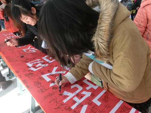 活动过程中广大同学都积极参与,在横幅上签上自己的名字。同学们在大大的横幅上签满了名字,保证在考试中必定做到自觉遵守考风,考纪,承诺以诚信对待每一场考试,考出真实水平。