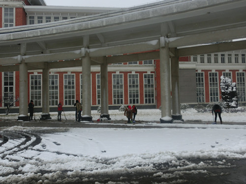 由于气候原因,校园被一层厚厚的积雪覆盖,为尽快消除大雪给广大师生出行造成的不便,在院团委的部署下,2014年2月18日下午经贸系团总支、学生会积极参加青年志愿者扫雪活动。