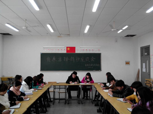 为大力弘扬学雷锋青年志愿服务活动,2014年3月7日下午,经济贸易系团总支、学生会组织同学们召开学雷锋青年志愿服务活动座谈会。会议由经贸系团总支书记何堃召开,经贸系全体团学干参加。