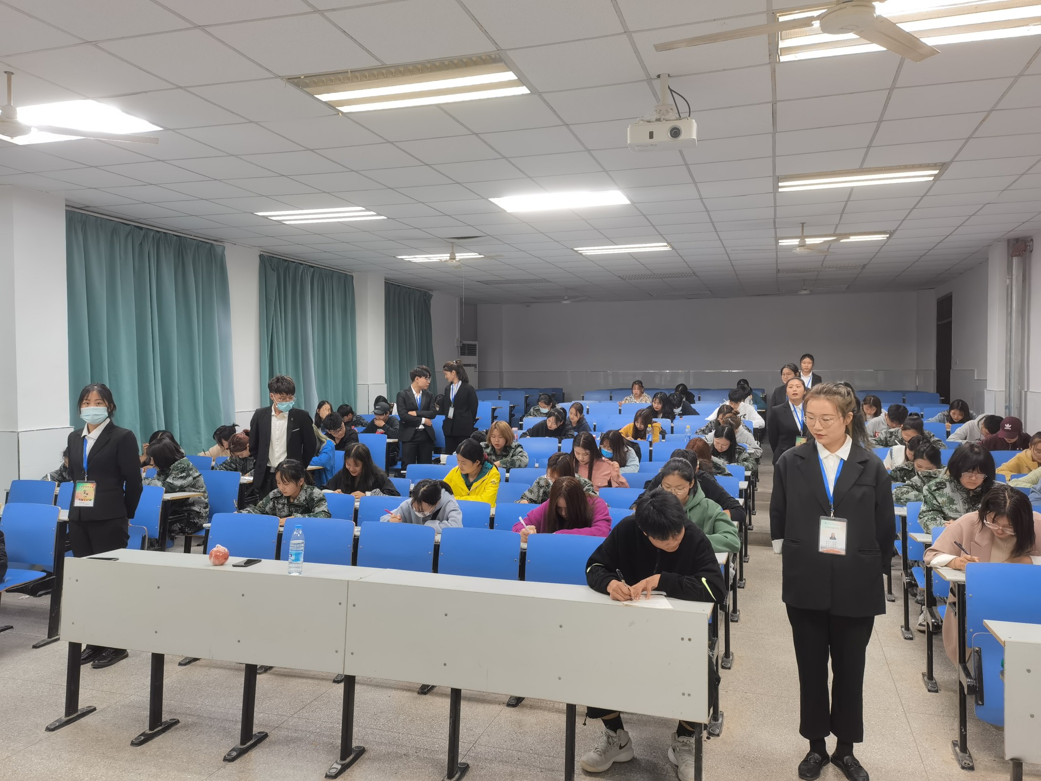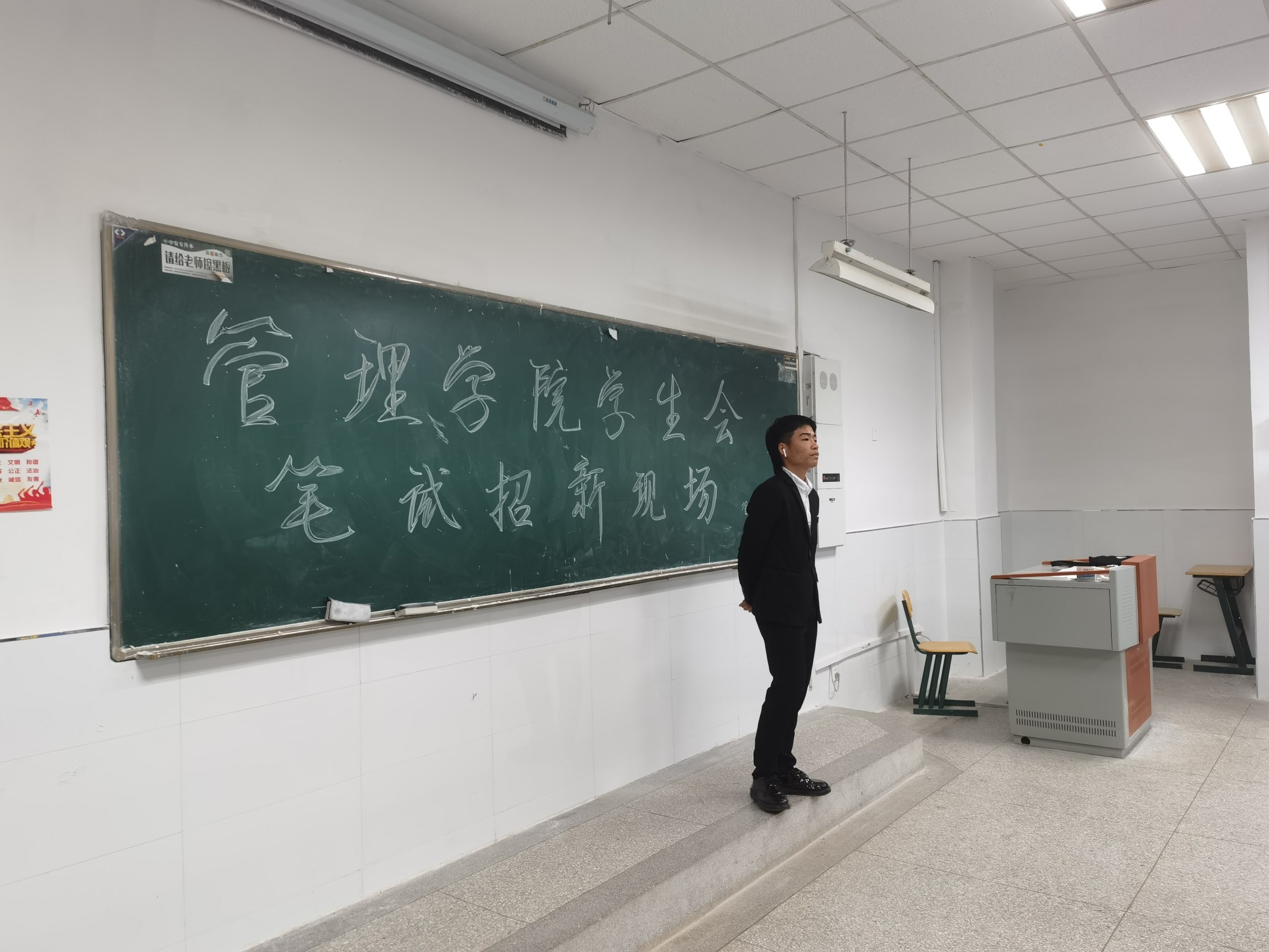 同学们都踊跃咨询,并根据自身情况和喜好在各部门积极报名。各部门成员为新生耐心的讲解各种疑问,并为每一位学弟学妹做好报名登记。随后,在18号晚上,管理学院组织了第一轮笔试,为了同学们能够发挥出自己的水平,学生会大二成员早早来到现场在教室里进行布置。在笔试过程中,同学们认真的答题,考场纪律良好,体现了这批同学们的整体素质。