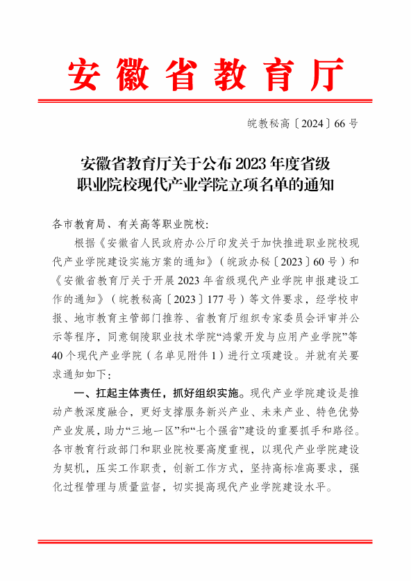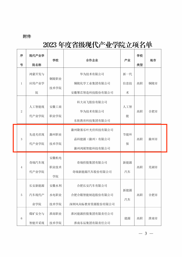 近日,安徽省教育厅公布2023年度省级现代产业学院立项名单,好博官网先进光伏现代产业学院获批立项建设,是好博官网第三个省部级产业学院。